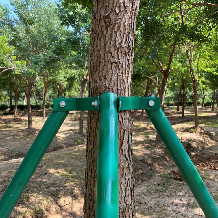 Деревья поддерживают устройство для крепления стальной трубы.