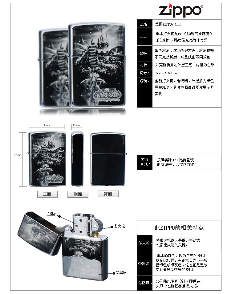 Оригинальный подлинный Zippo Black Ice Mircor Lister World of Warcraft Dota Lich King Elsace WoW