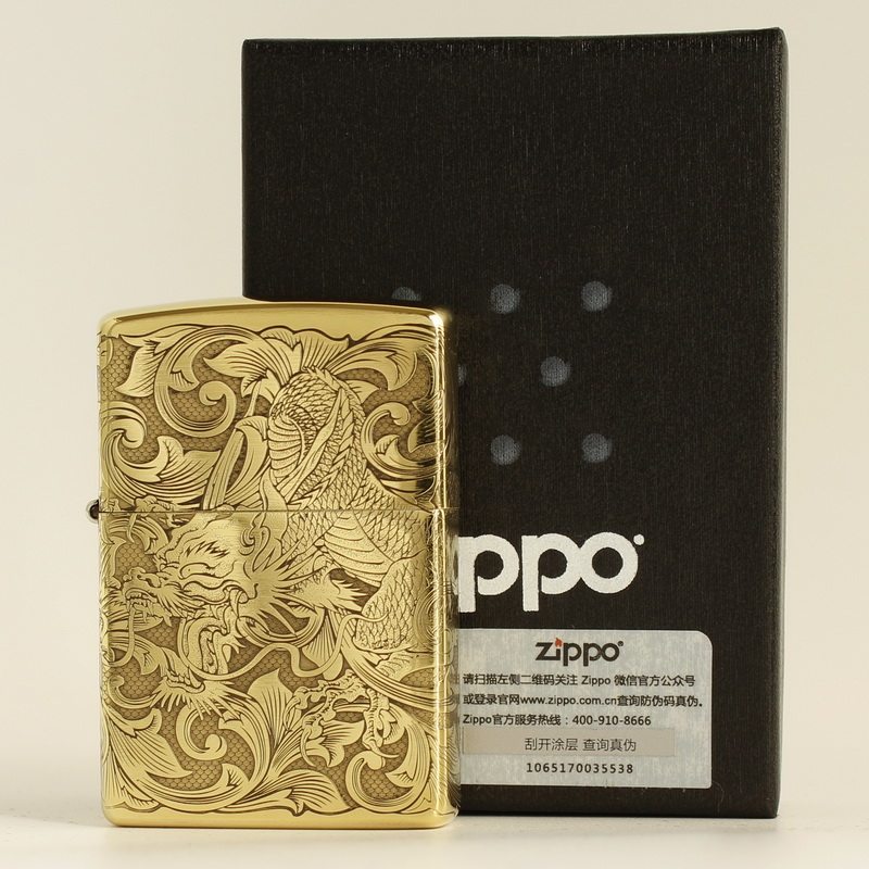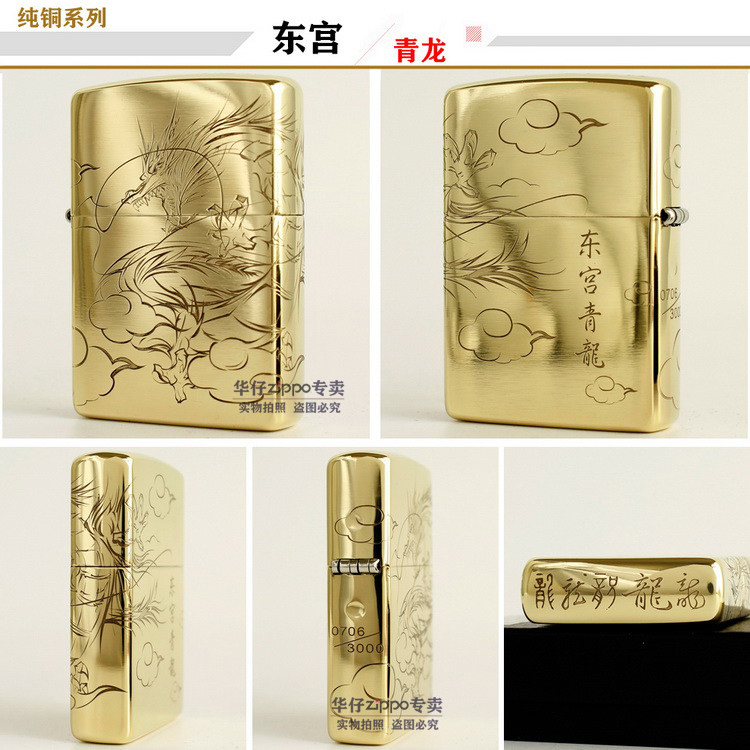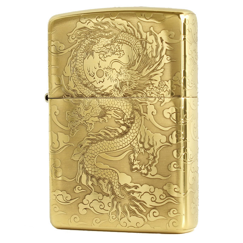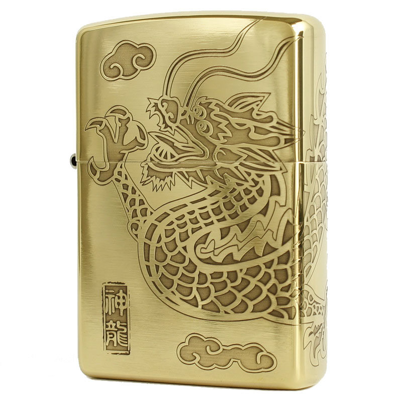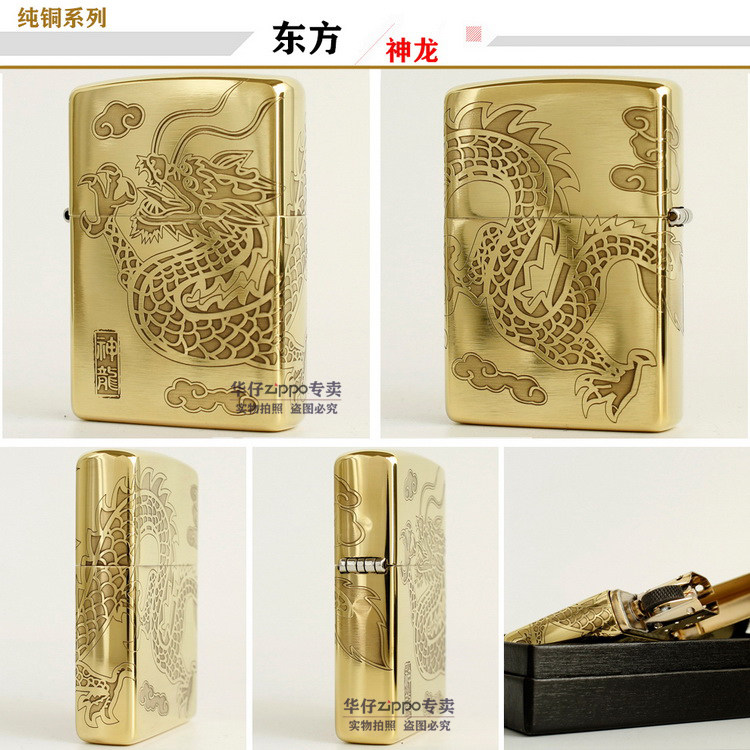 Подлинный ветропроницаемый керосин Zippo 204B Бронзовый трапильный травление Tang Cao Dragon Donggong Qinglong Xiangyun Dragon