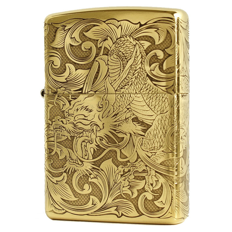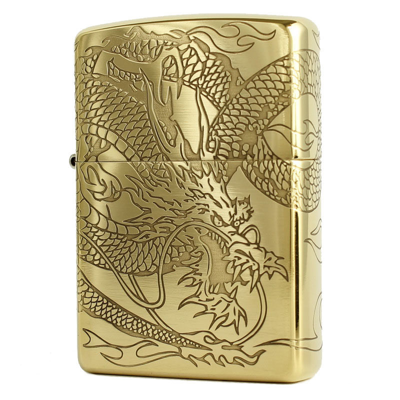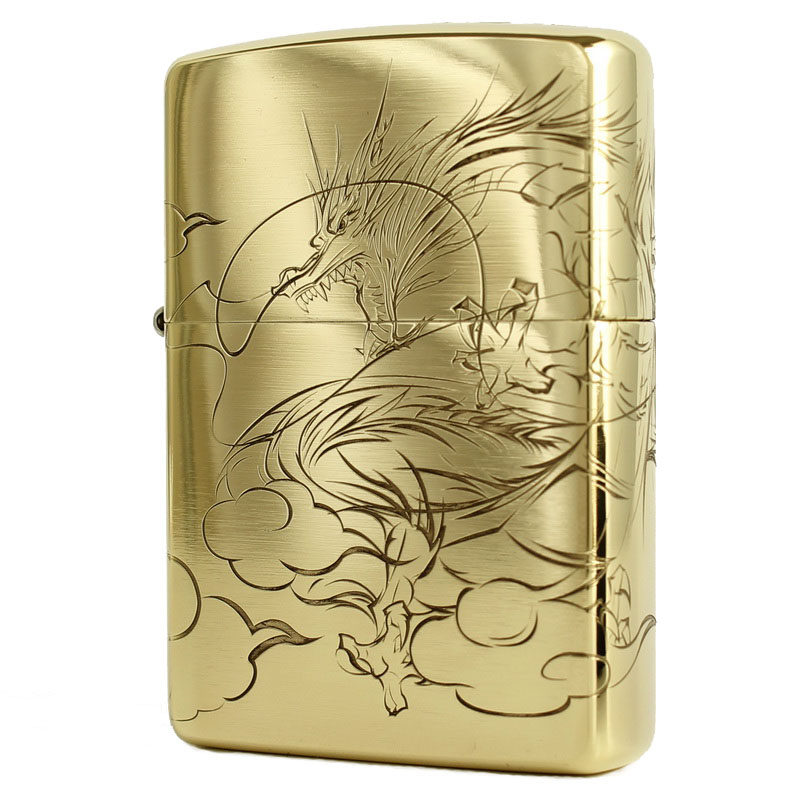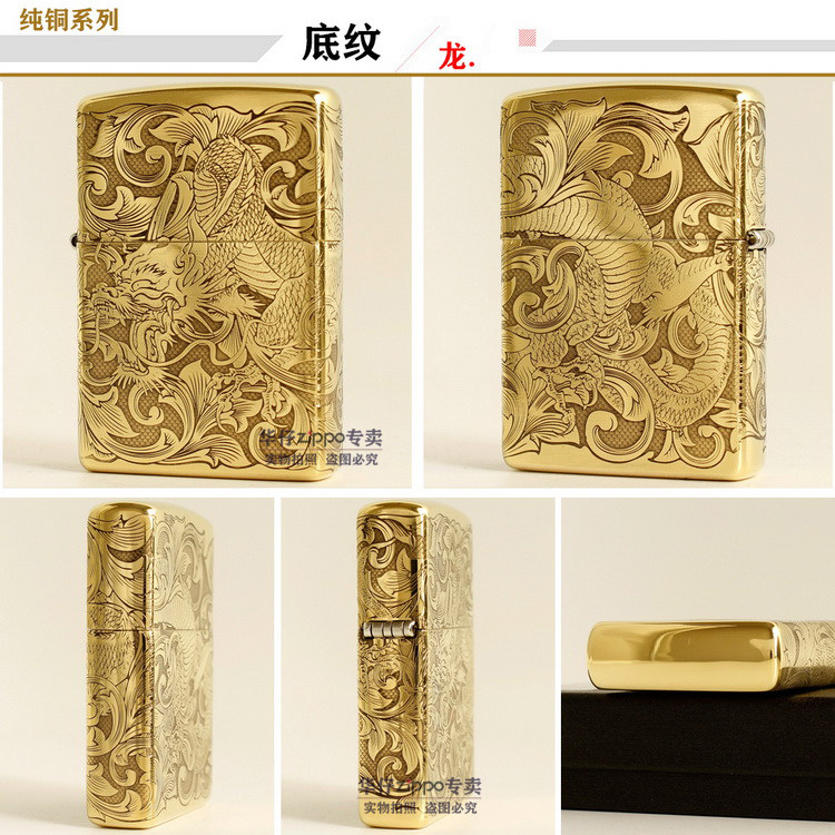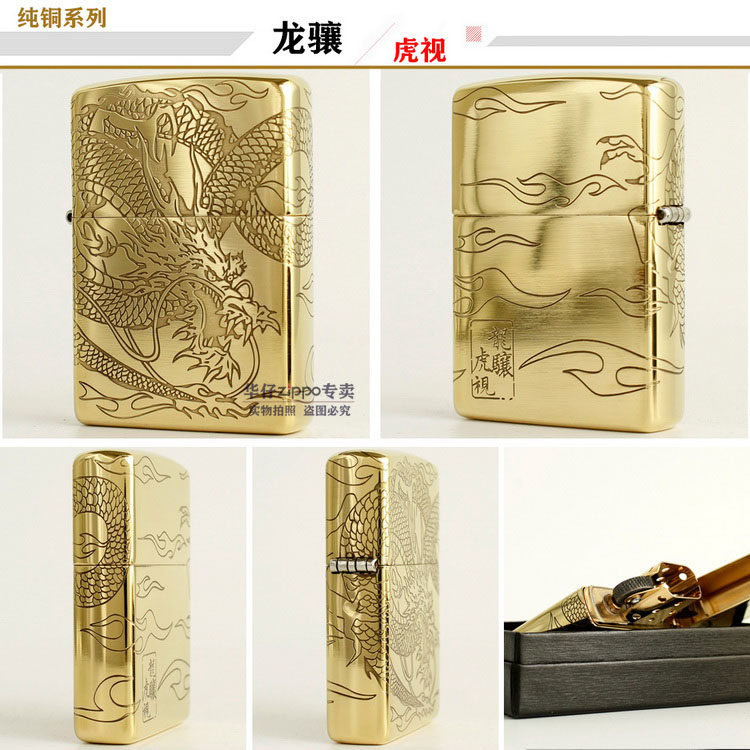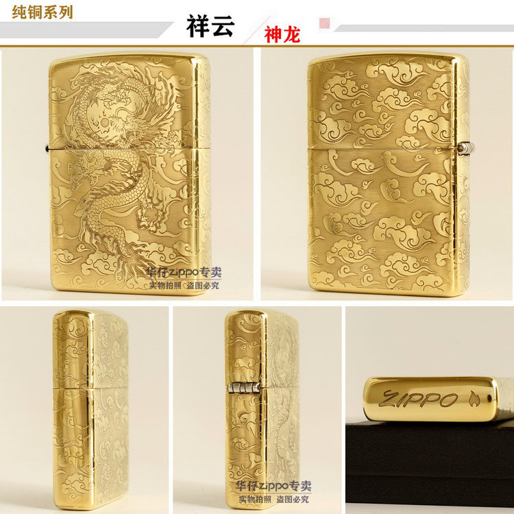 Подлинный ветропроницаемый керосин Zippo 204B Бронзовый трапильный травление Tang Cao Dragon Donggong Qinglong Xiangyun Dragon