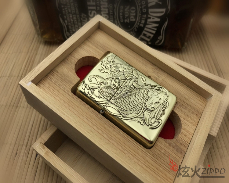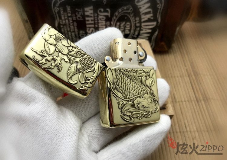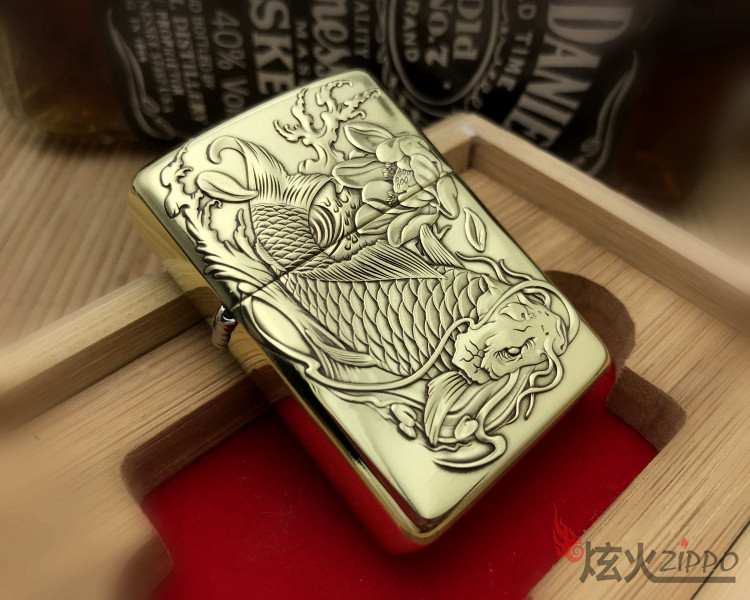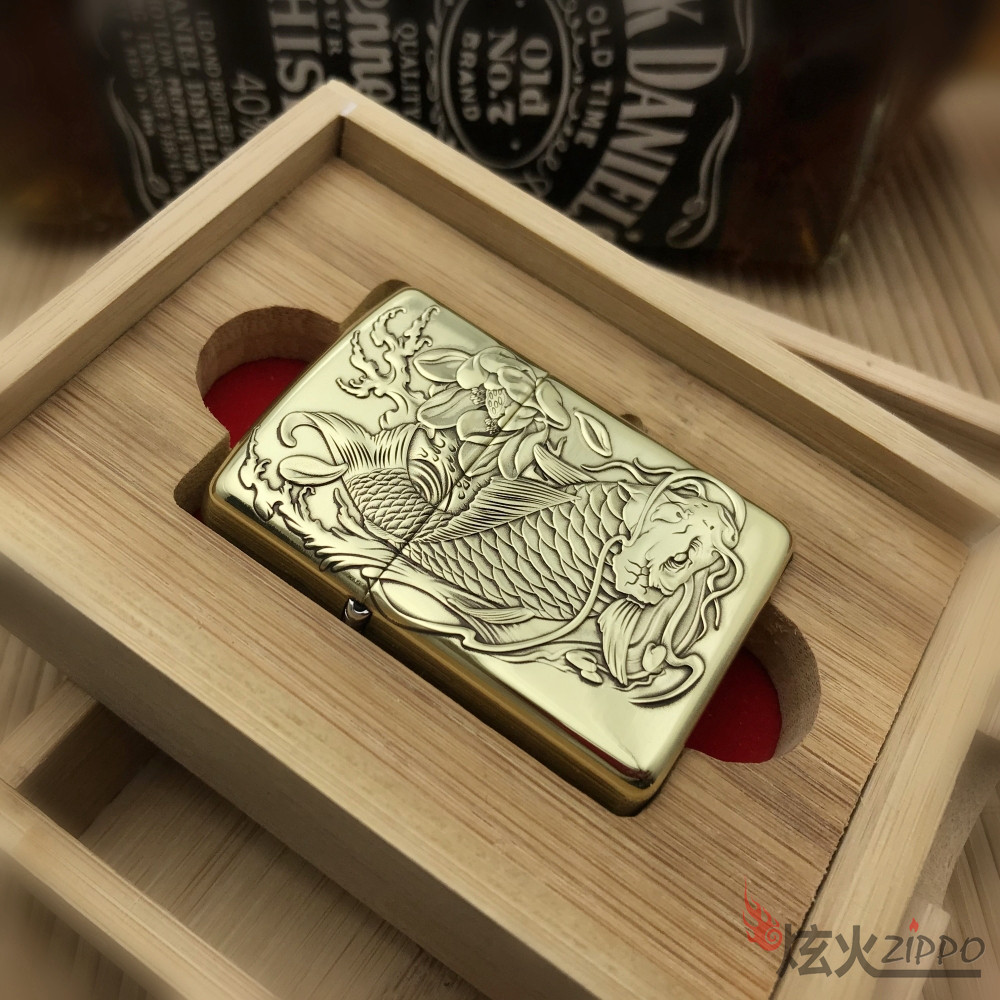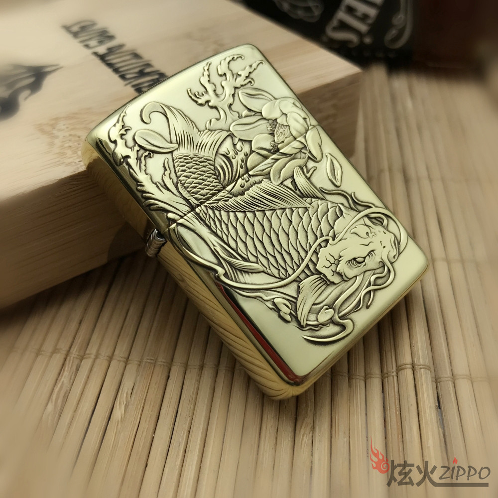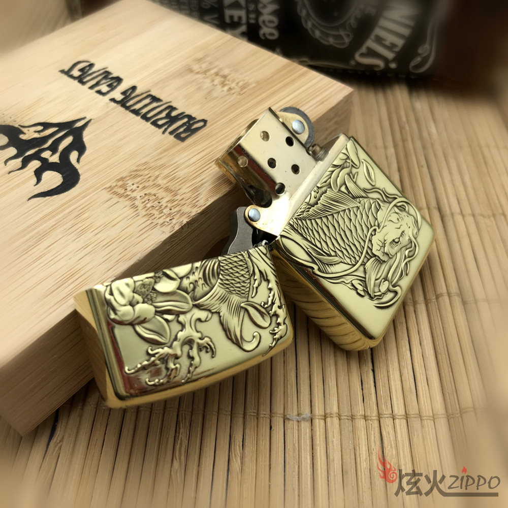 Оригинальная аутентичная Zippo более легкая чистая медная версия настройка версии более красноречивого резного карпа подлинная гравировка