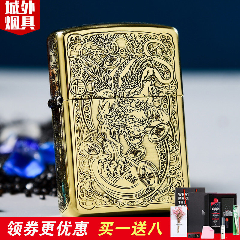 Мужская оригинальная латунная ретро ветрозащитная зажигалка на керосине, на удачу
