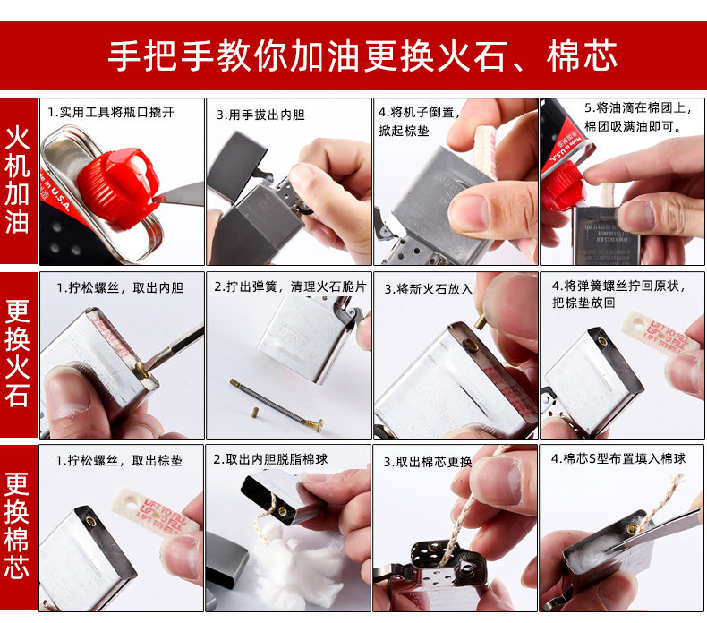 zippo Оригинальная зажигалка, оригинальный вкладыш, маслопоглощающая подушка, хлопковая гигроскопическая вата, аксессуары