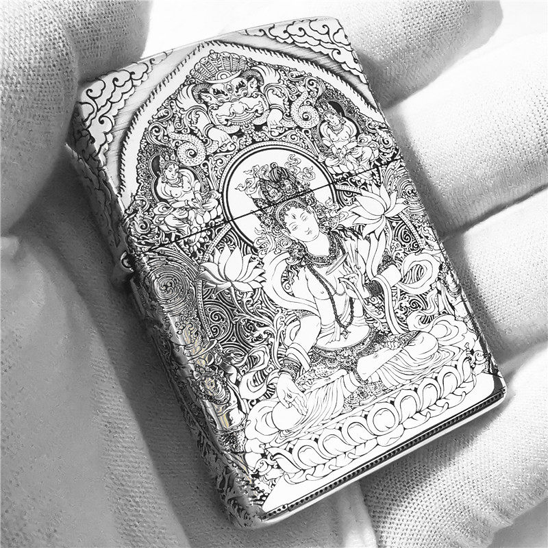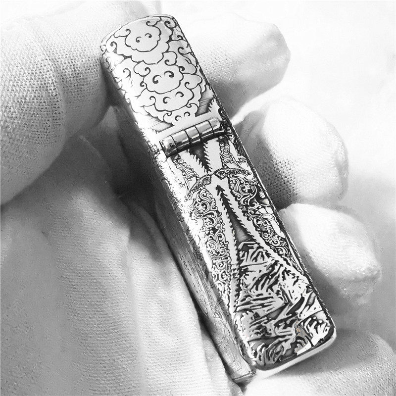 Мужская оригинальная ветрозащитная зажигалка на керосине, серебро 925 пробы