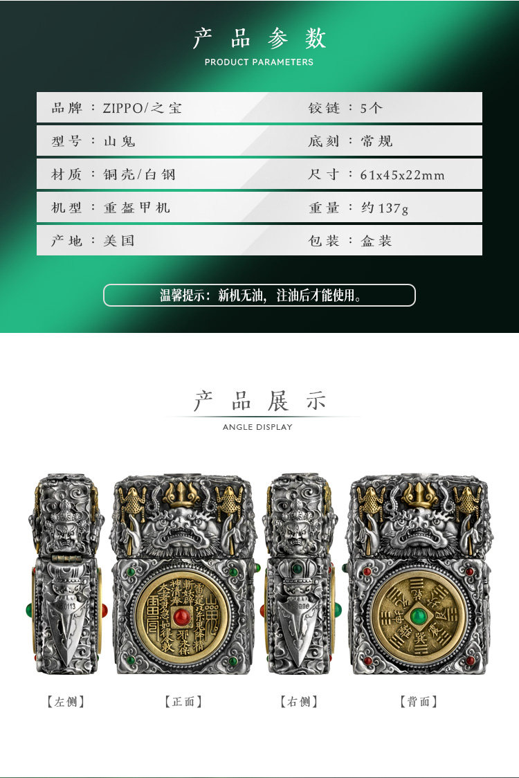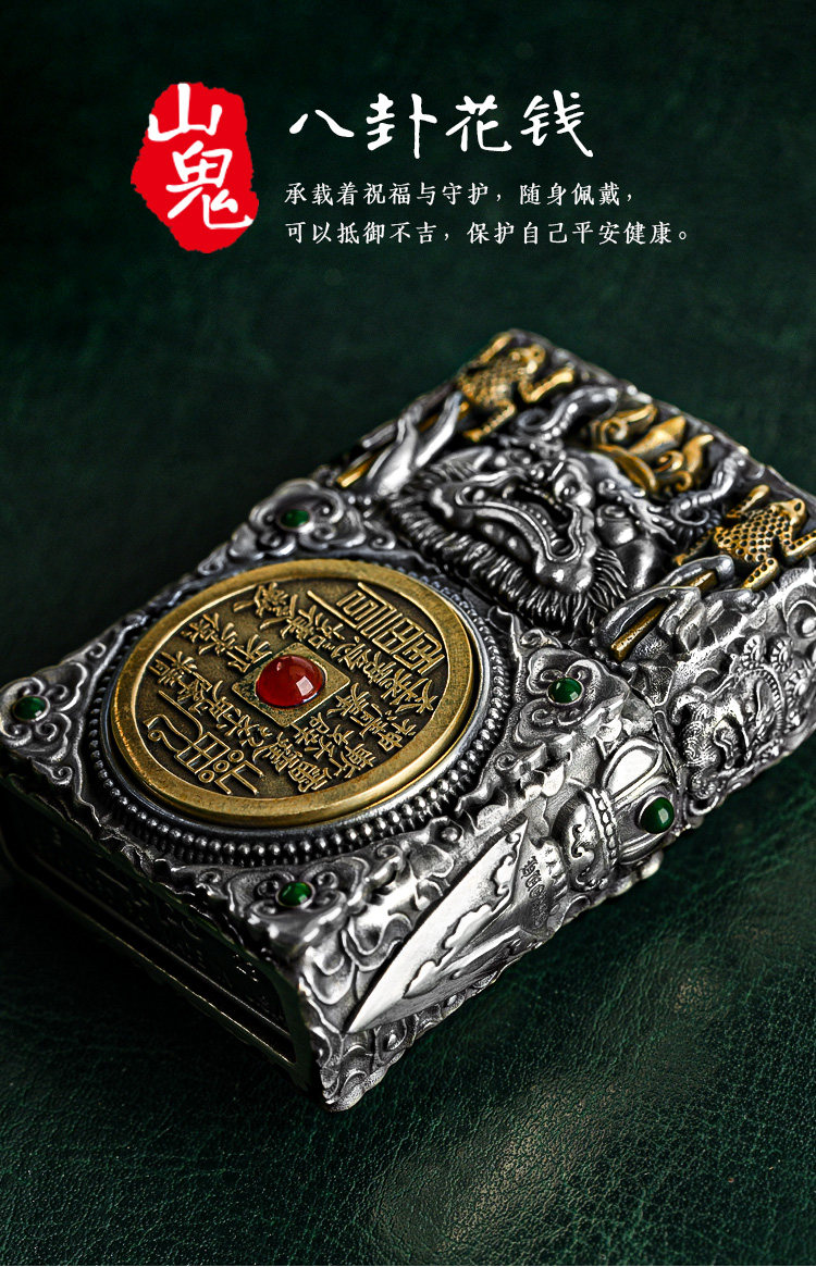 Подлинный ветропроницаемый Zippo: керосиновая тяжелая броня машина гора призрак деньги багуа Qiankun Sticker Shell
