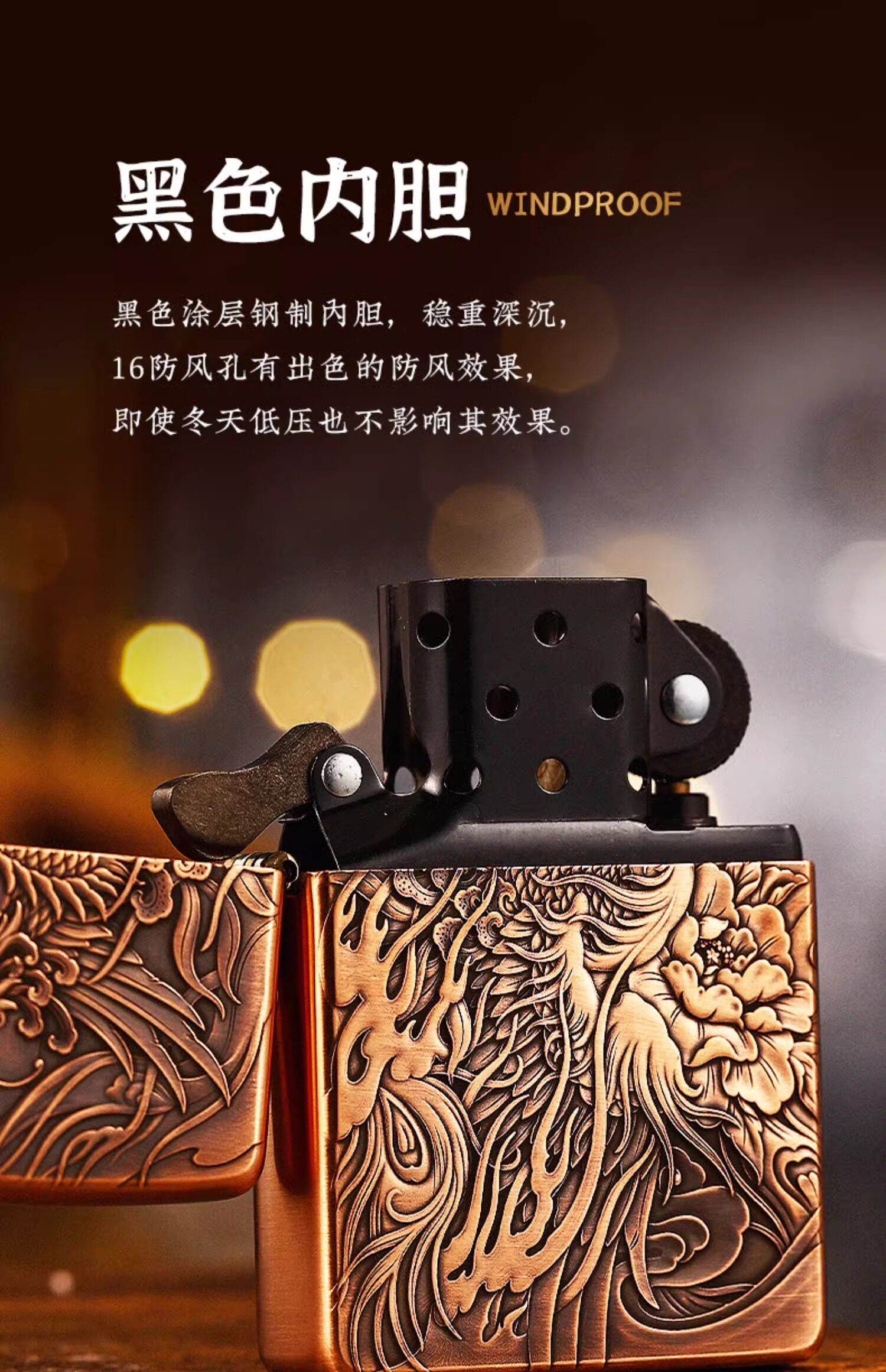 Мужской медный двусторонний Феникс, оригинальная ветрозащитная зажигалка на керосине