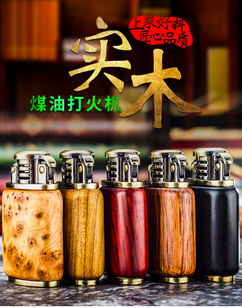 Мужская медная старомодная ветрозащитная креативная зажигалка на керосине из сандалового дерева