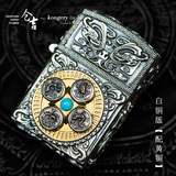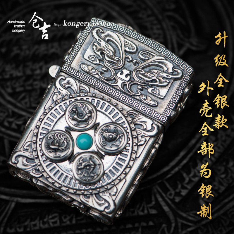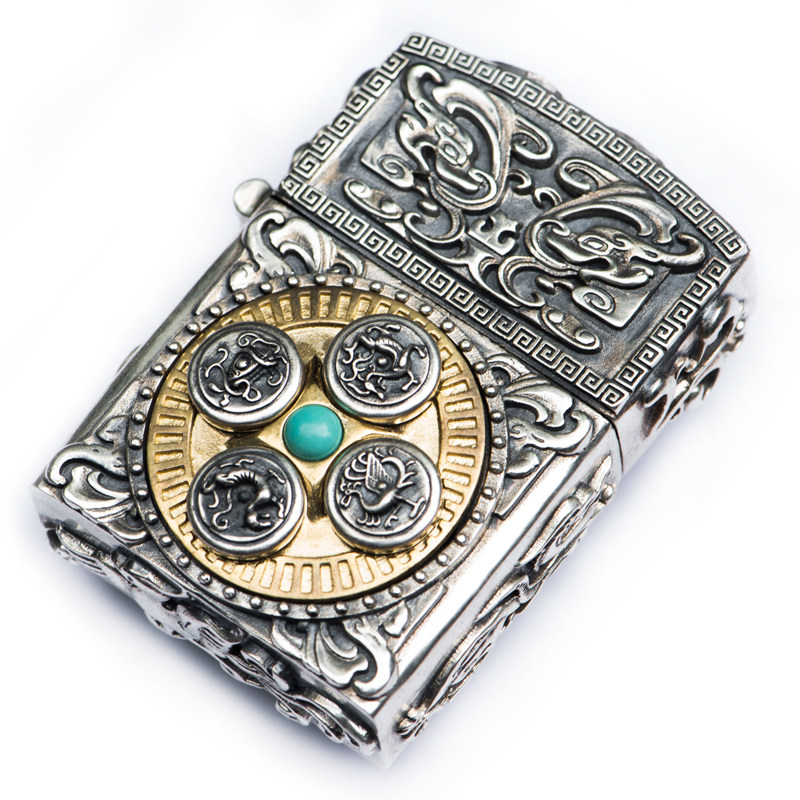 Резная ретро креативная ветрозащитная зажигалка ручной работы на керосине, серебро 925 пробы, креативный подарок