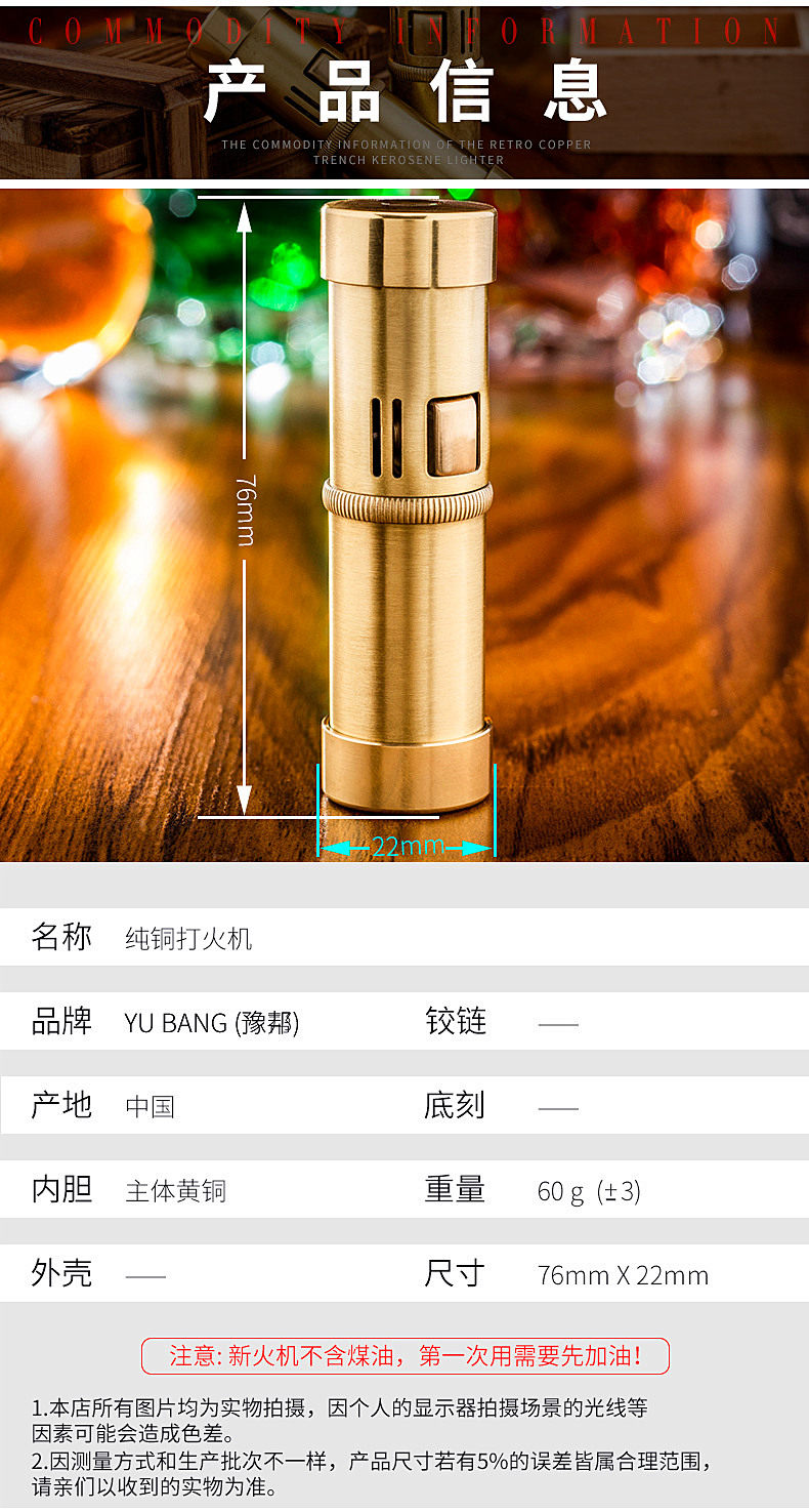 Медная оригинальная ретро зажигалка на керосине, ностальгия