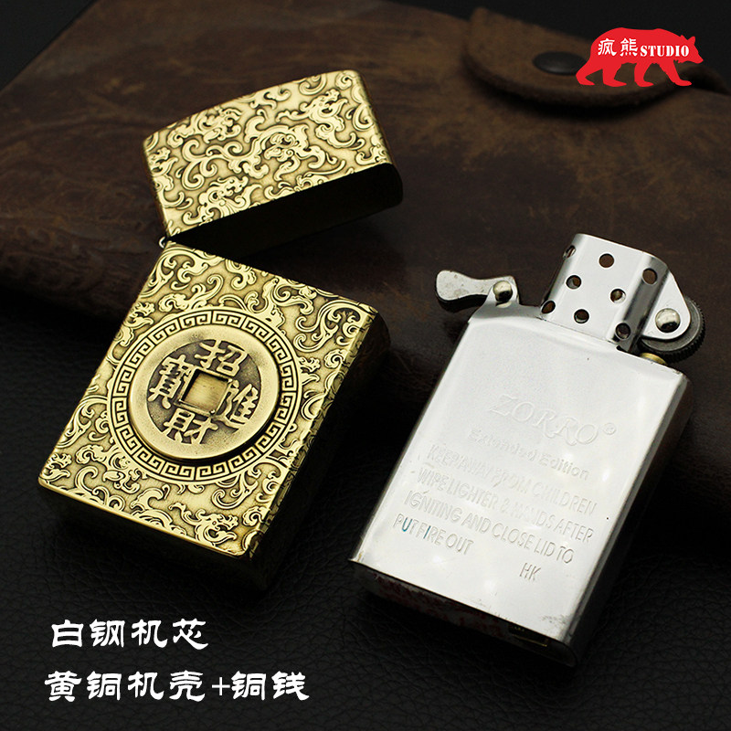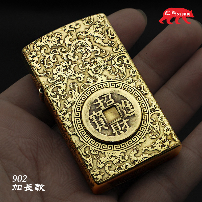 Длинная латунная креативная зажигалка на керосине, мужская резная нашивка ручной работы, подарок на день рождения