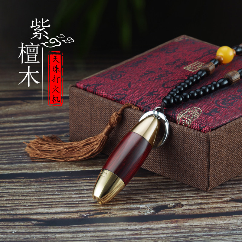 Зажигалка из сандалового дерева, креативный ретро брелок