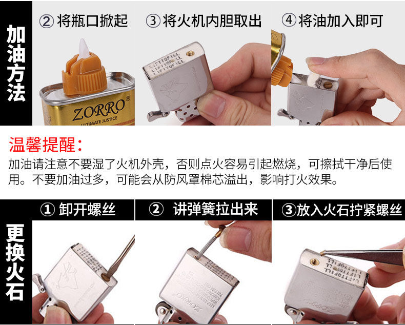 Zorro Original Authentic ZORRO и масляные зажигалки Специальные масляные и ароматные рисовые масляные аксессуары.