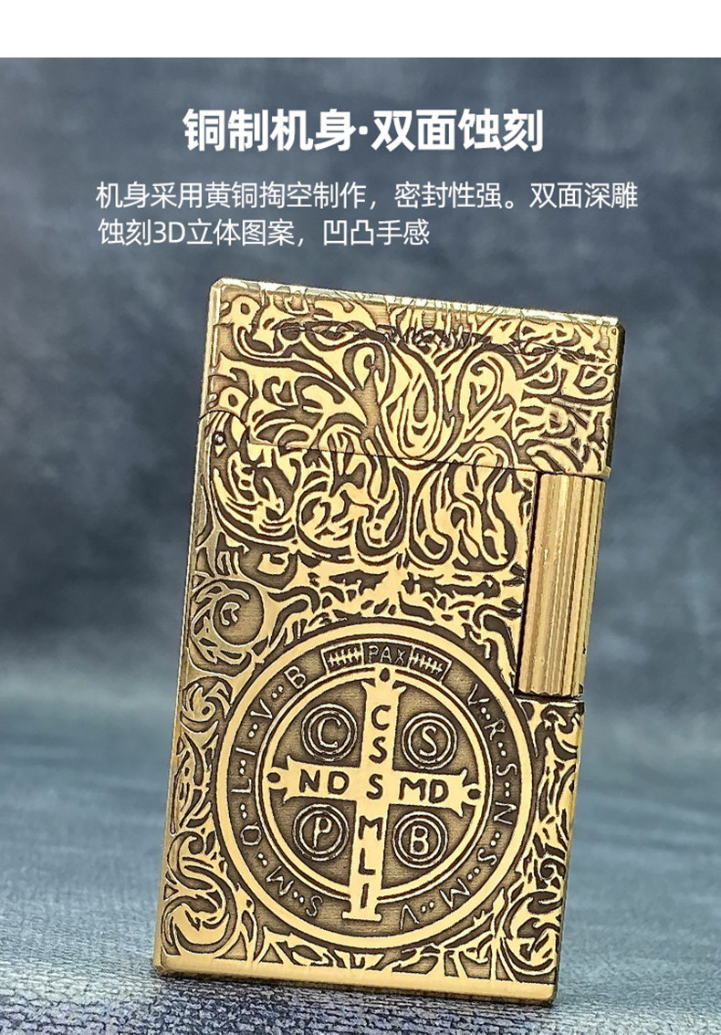 Старомодная медная тяжелая латунная зажигалка на керосине с боковым колесиком