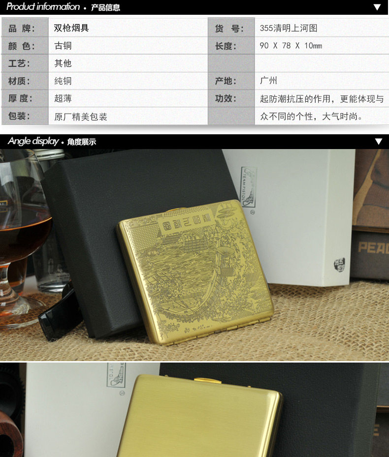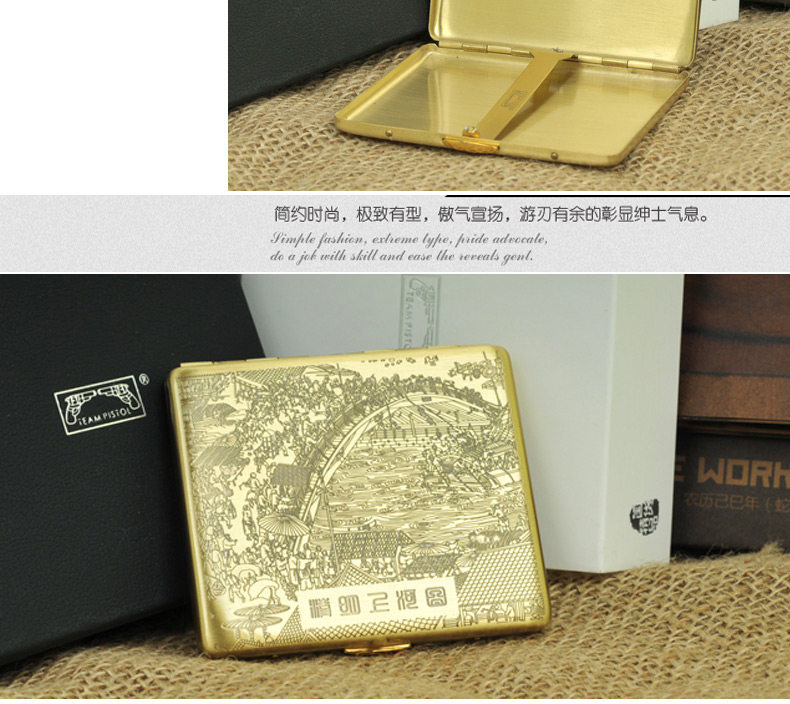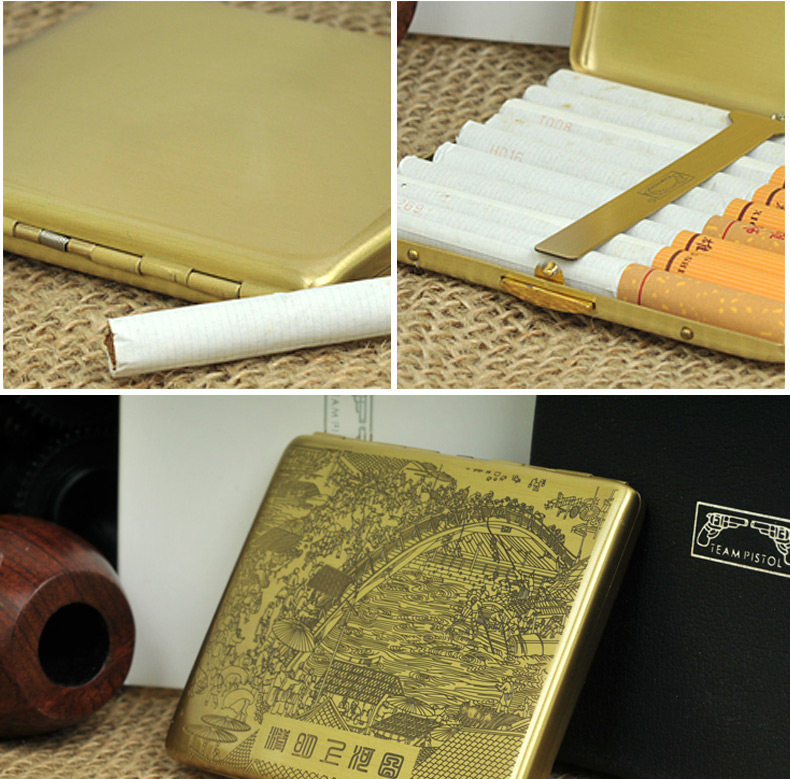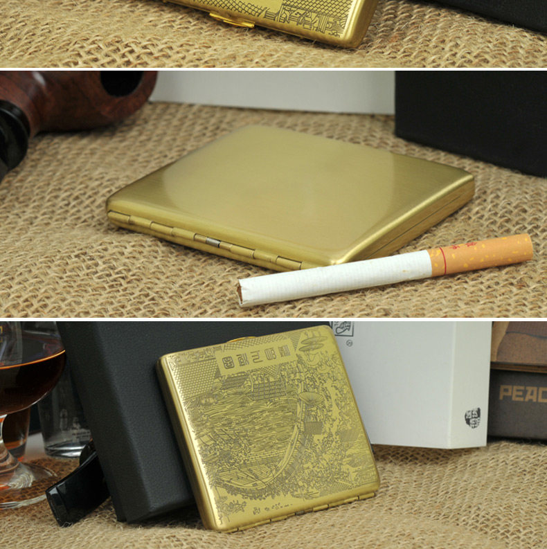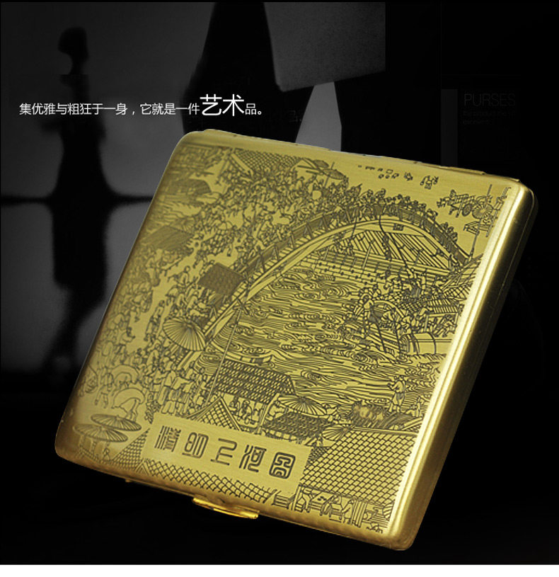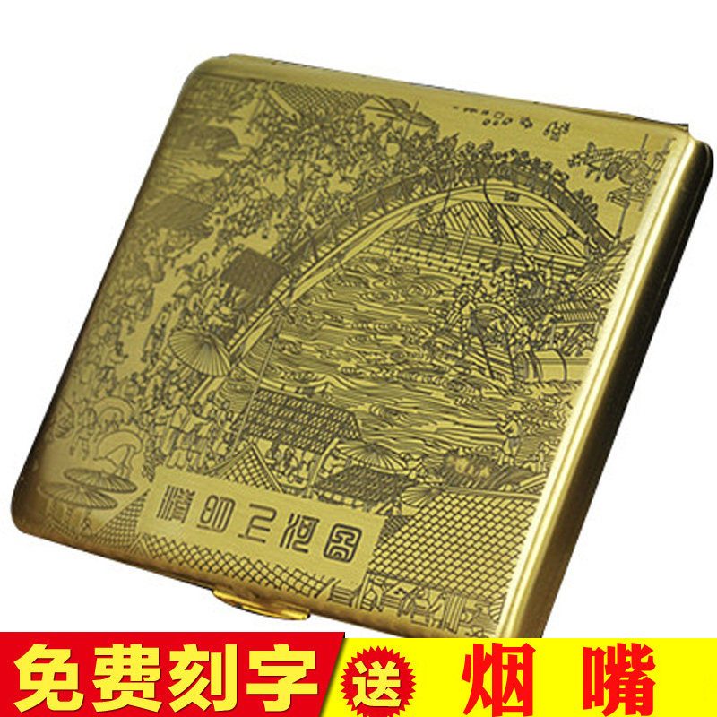 Двухногенная сигаретная коробка медная металлическая сигаретная коробка Qingming Shanghe Tu 9 подлинный дым с сигаретами сигарет сигареты портативные сигареты