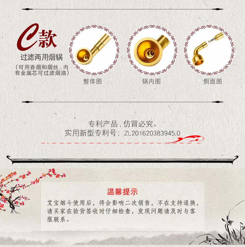 【О дымовой полосе】Дымовая стержень изготовлен из твердой древесины. Материал твердый, а воздухопроницаемость - это хорошо. После того, как сигаретный стержень с твердым деревом будет изготовлен из круглого, будут натуральные деревянные поры. У дымового стержня есть цветочный рисунок. Узор может быть неровным . Это неизбежно.