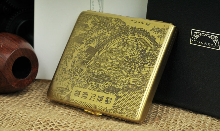 Двухгланг -сигаретная бутик -бутик -латунный металлическая сигаретная коробка Qingming Shanghe Picture 9