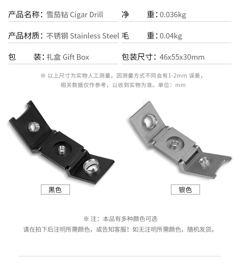 Сигарлуонг -баклажан Сигар Стук из нержавеющей стали острый лезвие двойное бурение с двойным буровым портативным сигаром