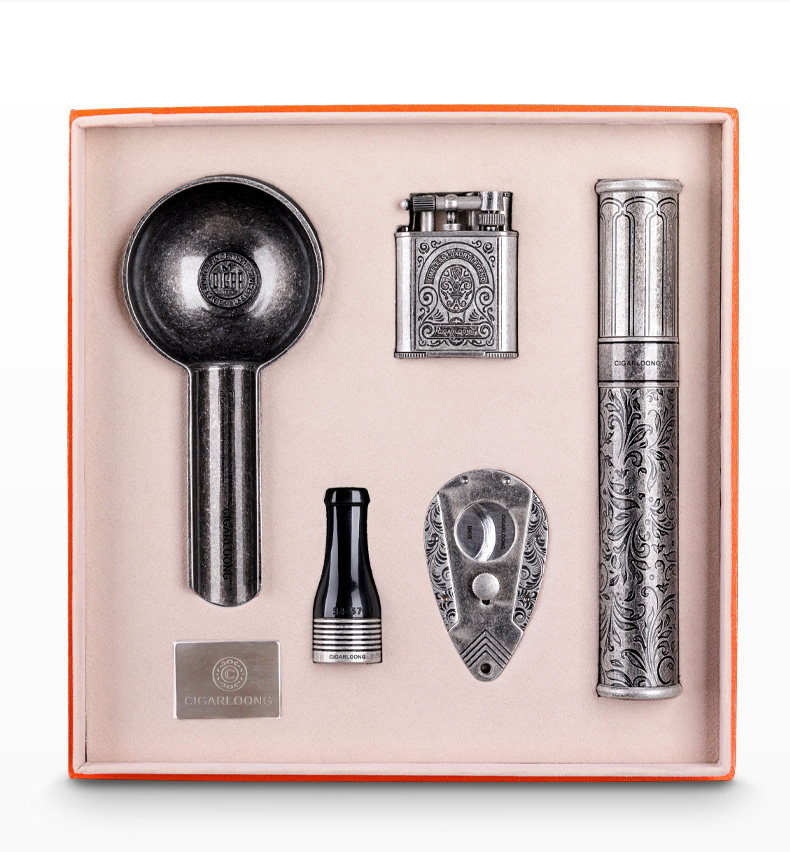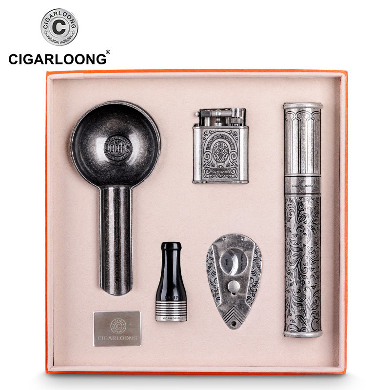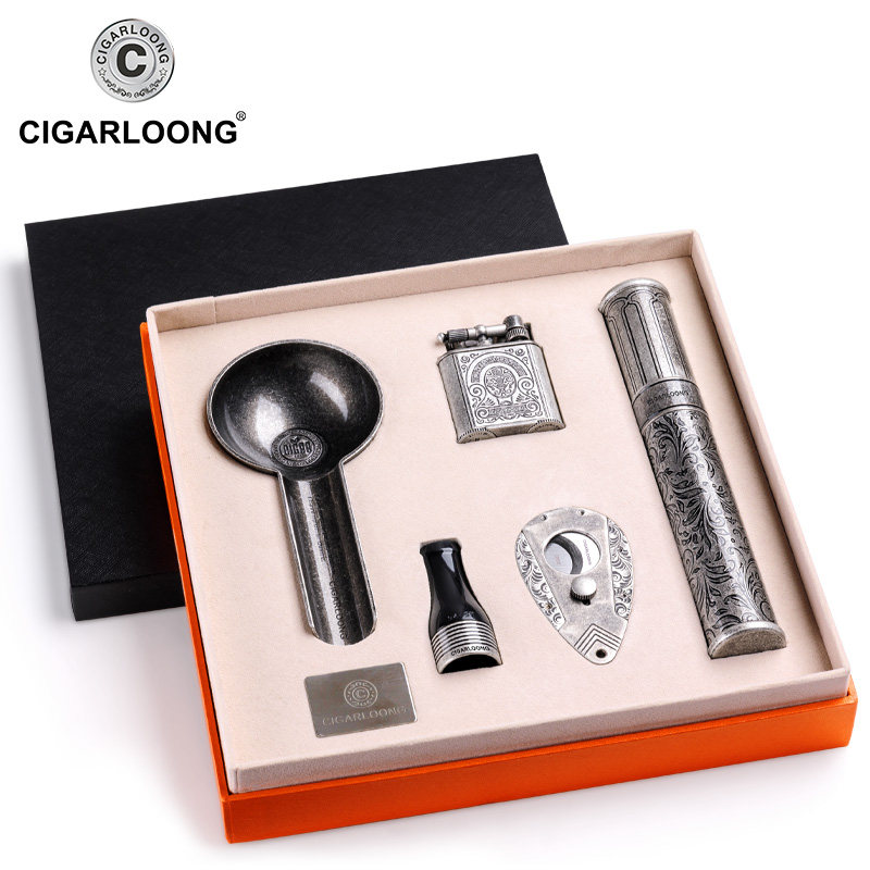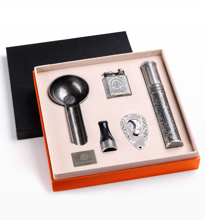 Ветрозащитная зажигалка, комплект, пепельница, мундштук, подарочная коробка