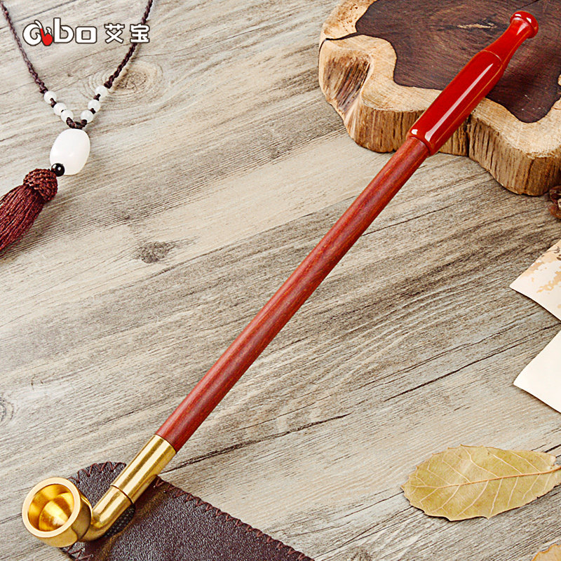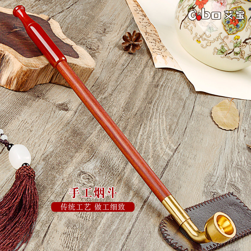 Старомодная длинная ониксовая медная курительная трубка ручной работы из сандалового дерева из провинции Юньнань