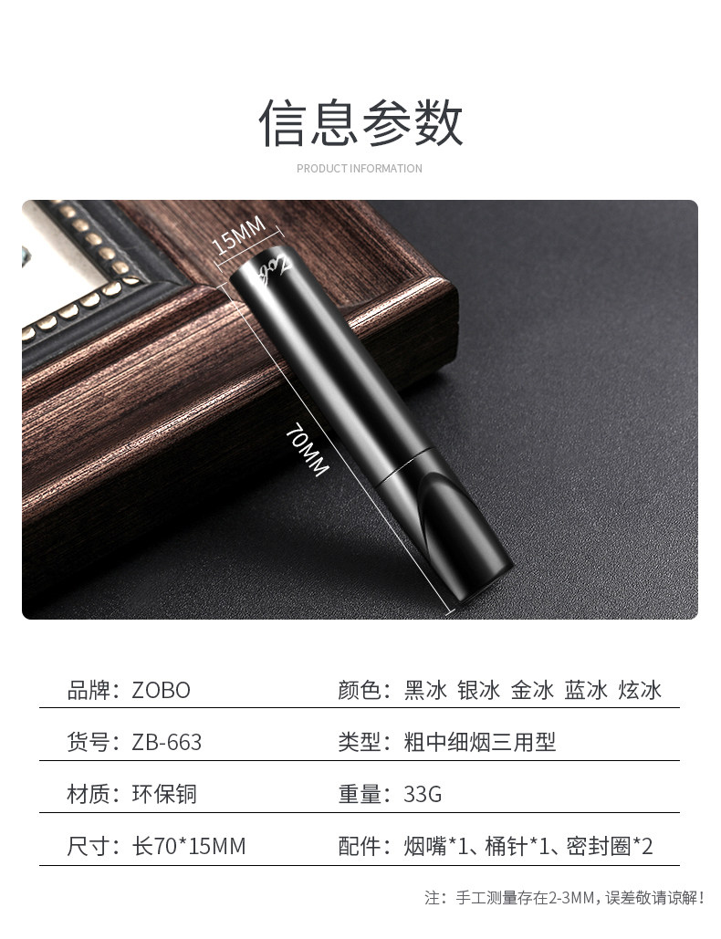 Оригинальный мундштук Zobo, фильтр циркуляционного типа, моющийся мужской фильтр грубой, средней и тонкой очистки сигарет, универсальный металлический очиститель дыма
