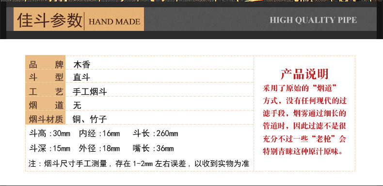 木香 Старомодная бамбуковая латунная курительная трубка