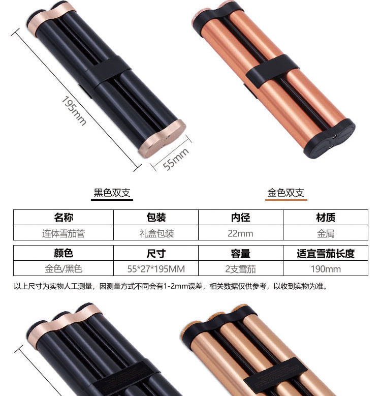 Сигарные увлажняющие трубы, двойной блюша три сигарных сигарных сигарных дыма, чтобы выйти и портативная ящик для вспышки