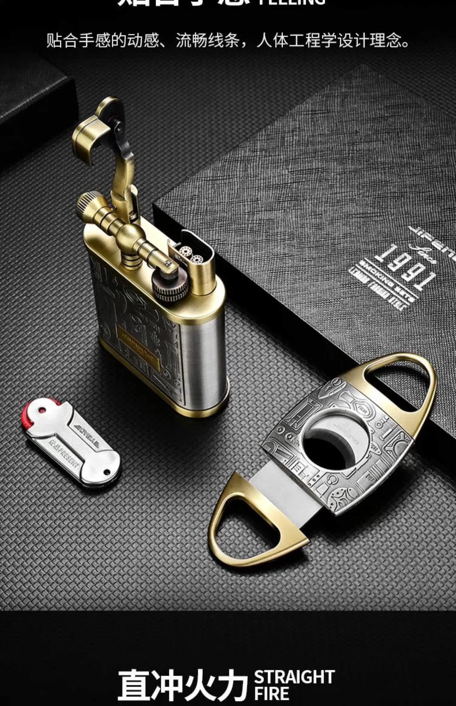 Зажигалка, комплект, ножницы, подарочная коробка, 3 предмета