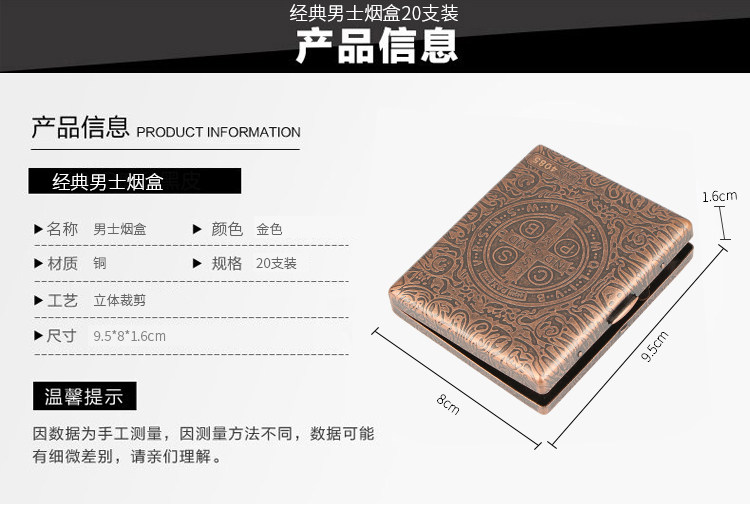 Ультратонкий медный металлический ретро креативный портсигар, 20 шт