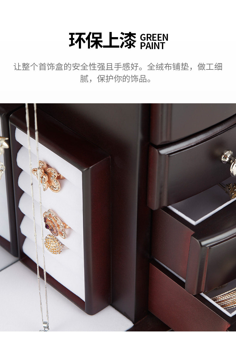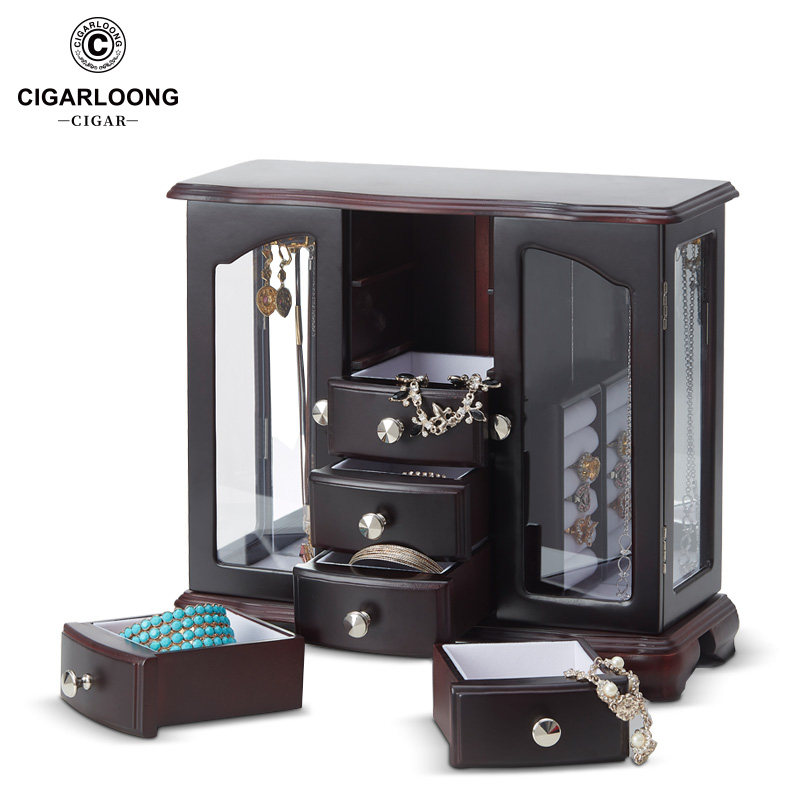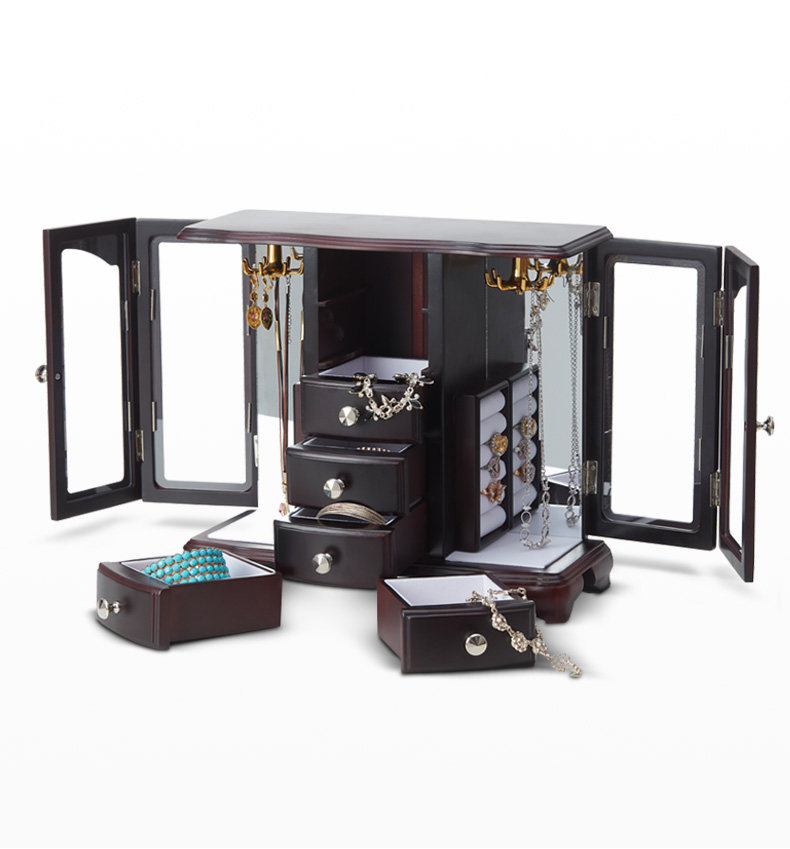 Серьги, ожерелье, коробка для хранения, аксессуар, многослойная вместительная и большая деревянная коробочка для хранения, ювелирное украшение, сундук с сокровищами
