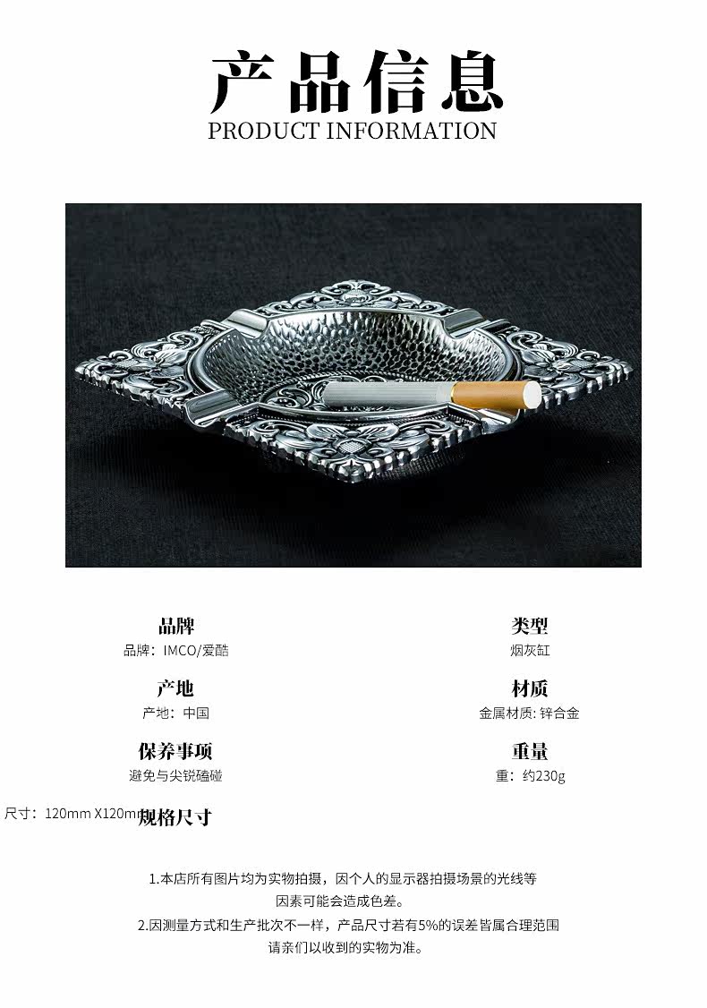 Трехмерная квадратная креативная ретро металлическая пепельница для офиса