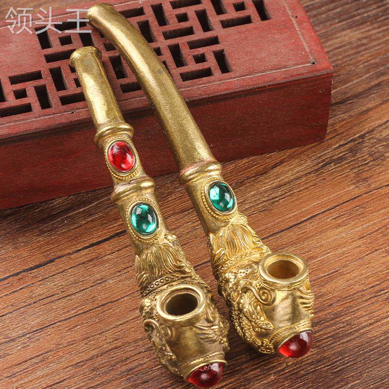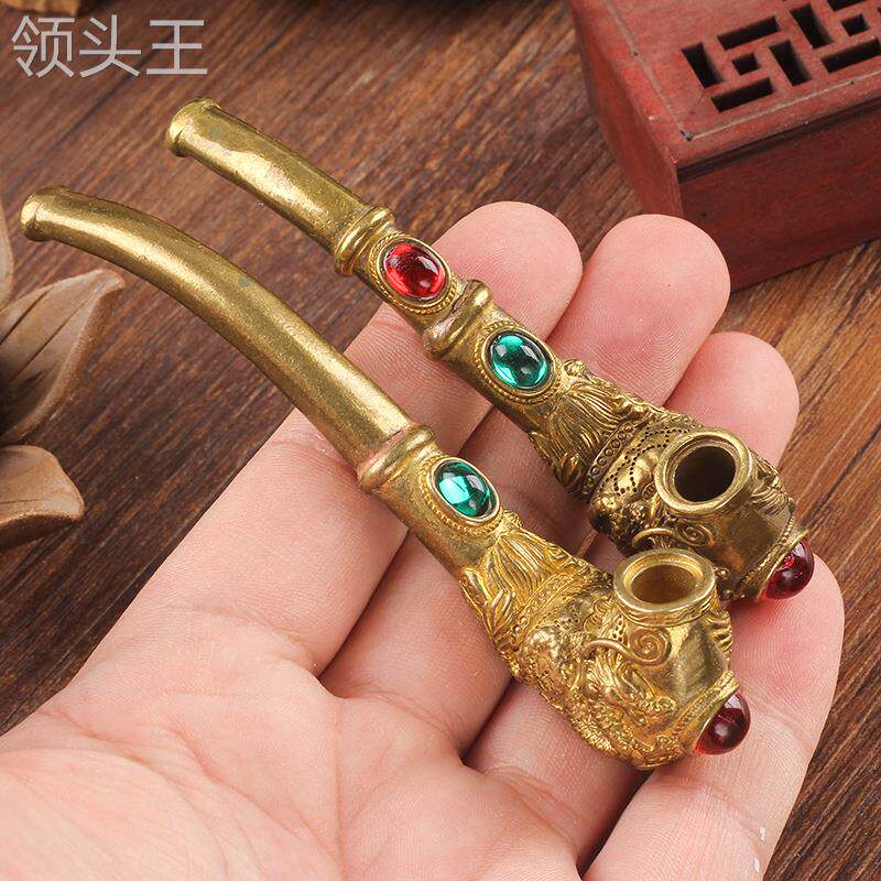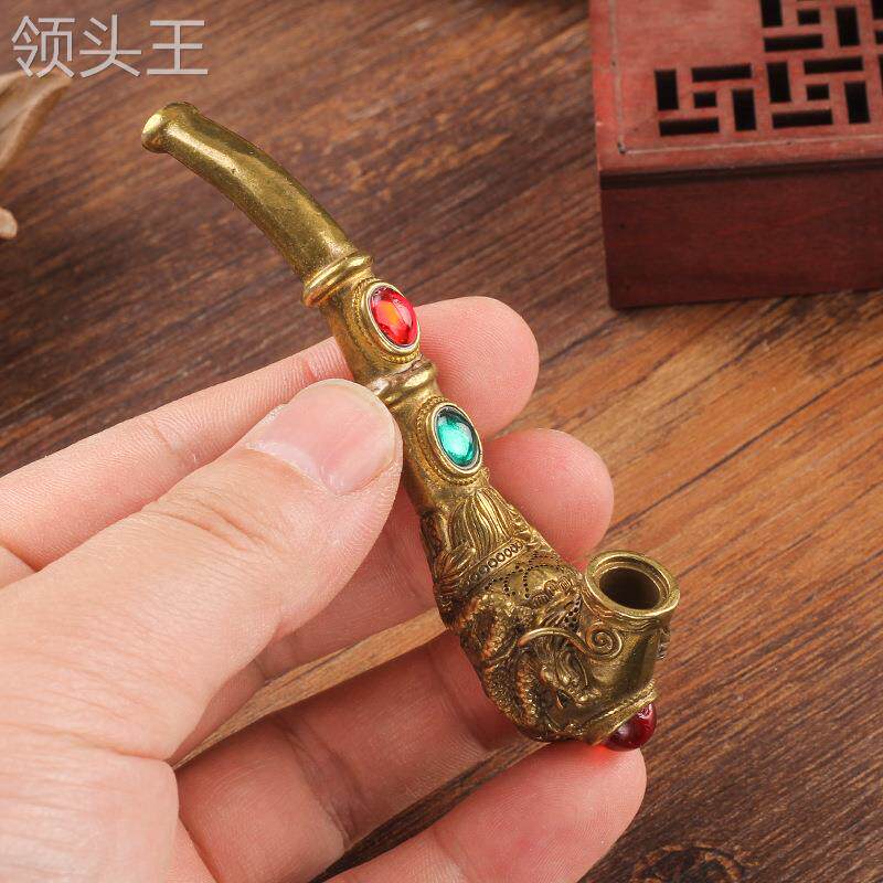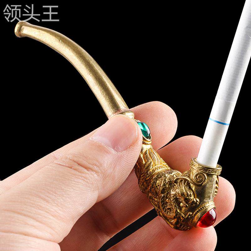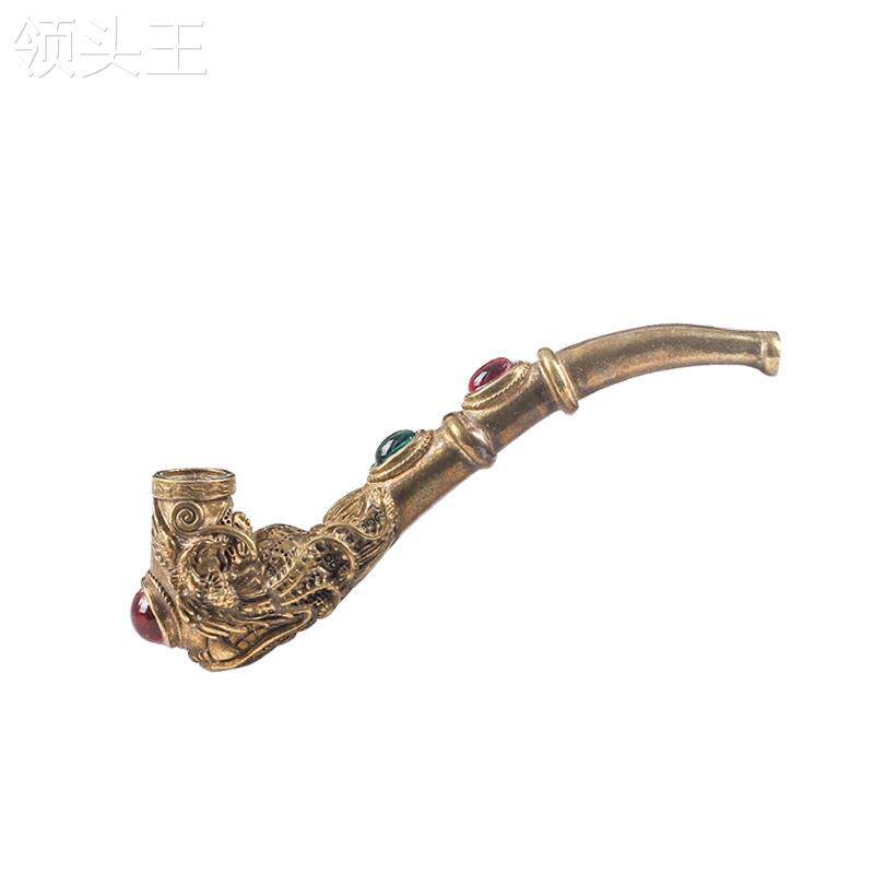 Мужская старомодная резная латунная курительная трубка ручной работы, мундштук, фильтр, дракон и феникс