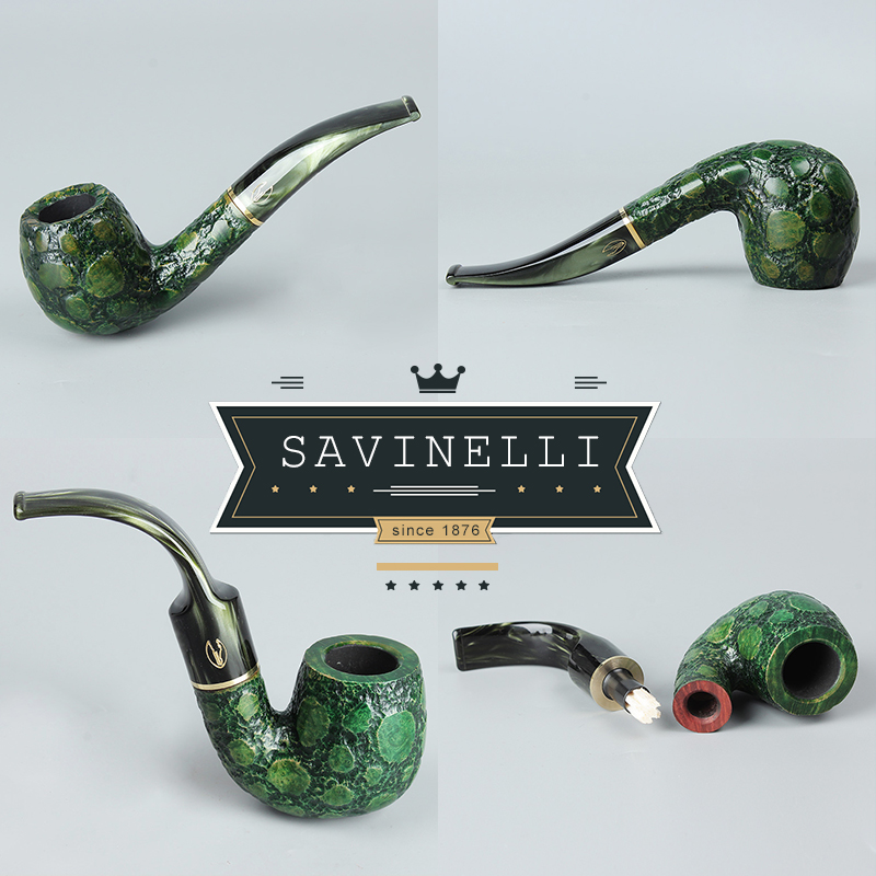 Девять -лечебные магазины 15 цветов итальянской серии Savinelli Savinelli Crocodile Imported Fiery Magnar Fighting Crocodile Agate Green 614