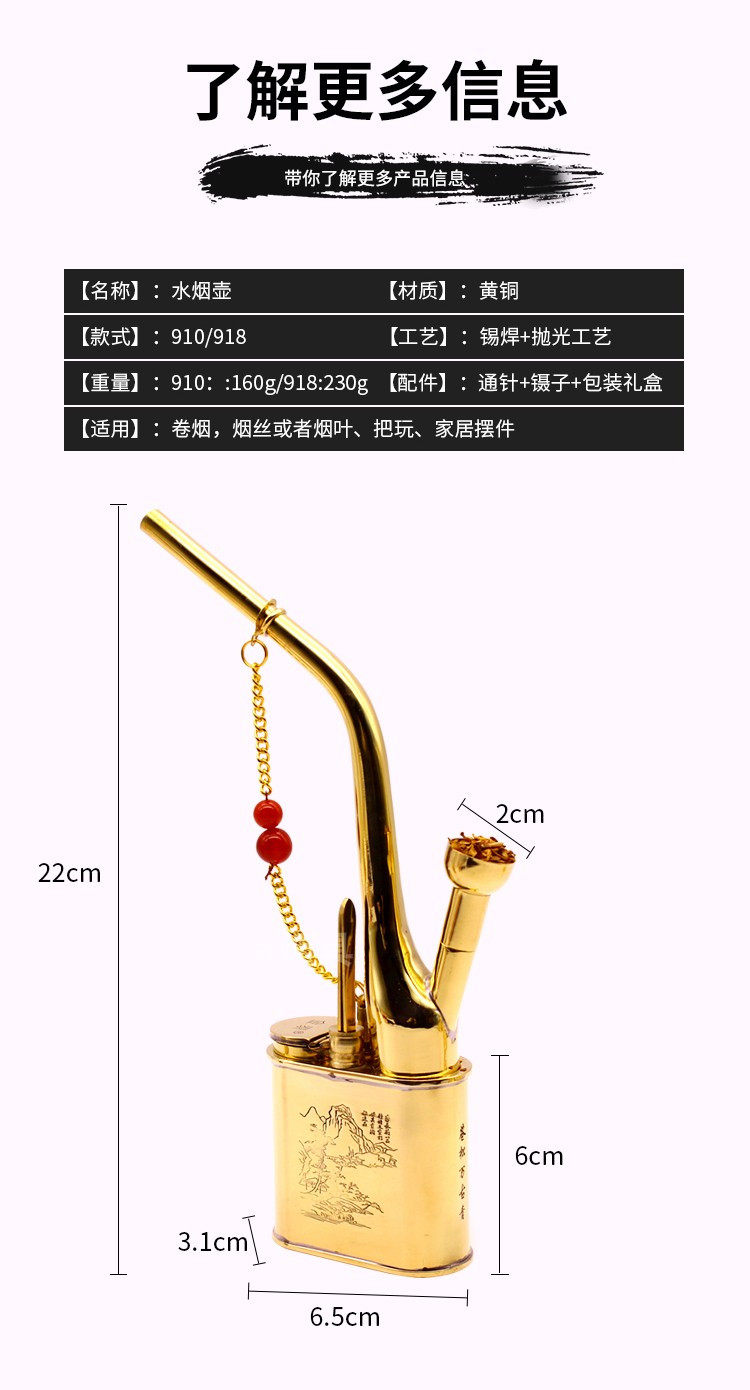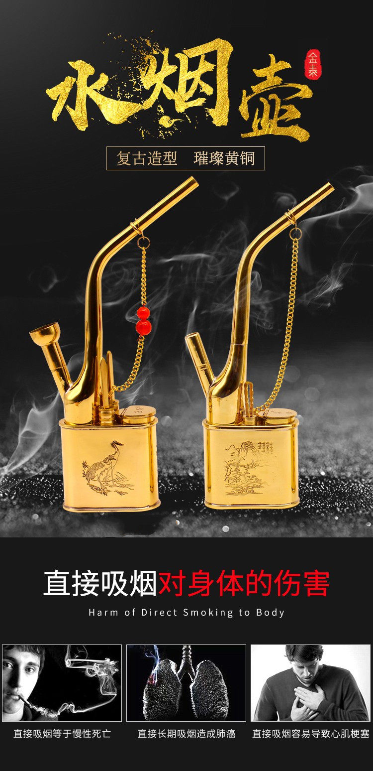 Медный старомодный ретро кальян, мундштук, полный комплект