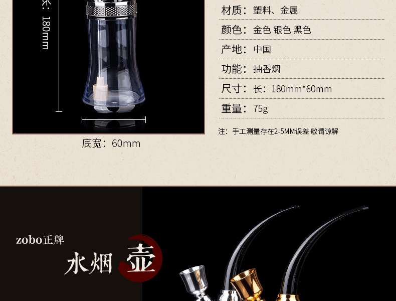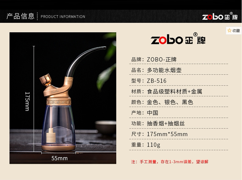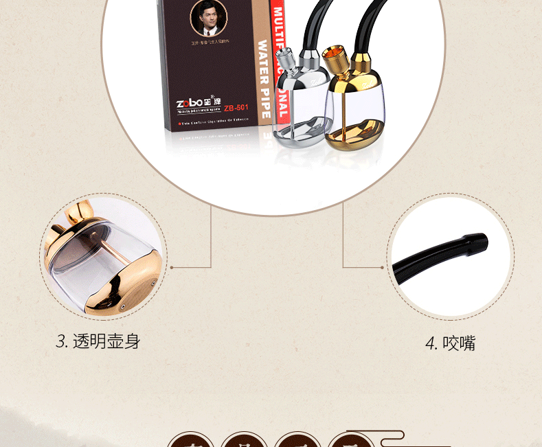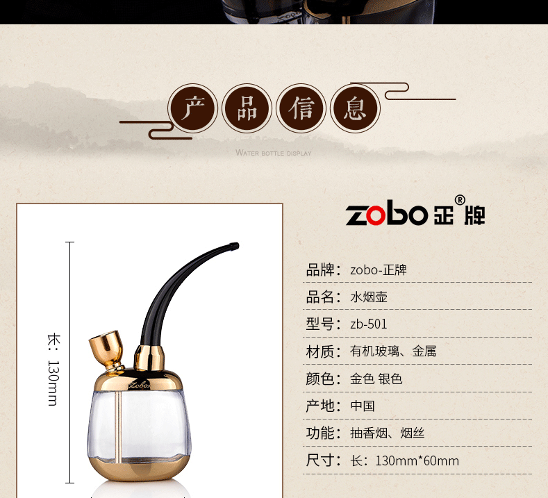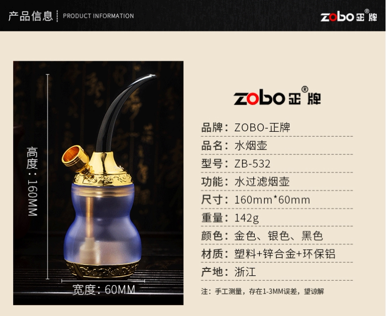 Зобо искренний нападающий бутылка 501 водный табак борьба с борьбой с борьбой с гладкой сумкой двойная революция фильтр изысканный подарочный пакет