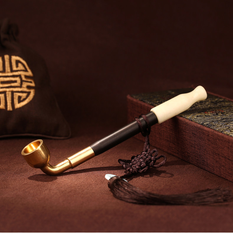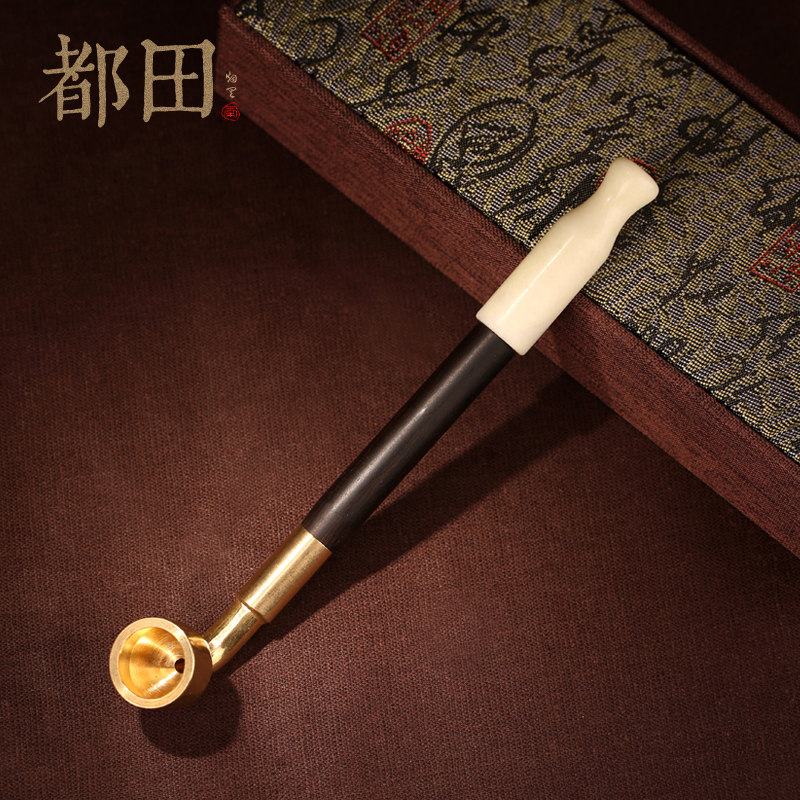 Мужская старомодная медная небольшая дизайнерская курительная трубка ручной работы из черного дерева Эбен из сандалового дерева из нефрита