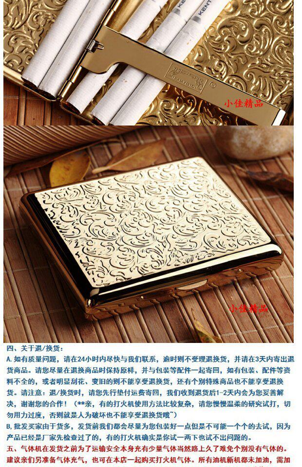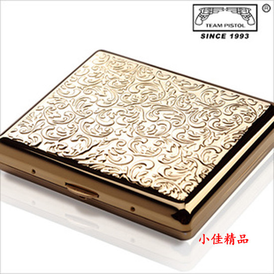 Подлинная коробка сигарет с двойным пистолетом 20 тонкие латунные золотые подарочные подарки Автоматические папки для дыма богатые трава трава полные цветы
