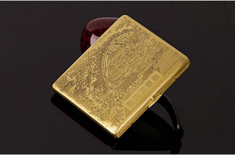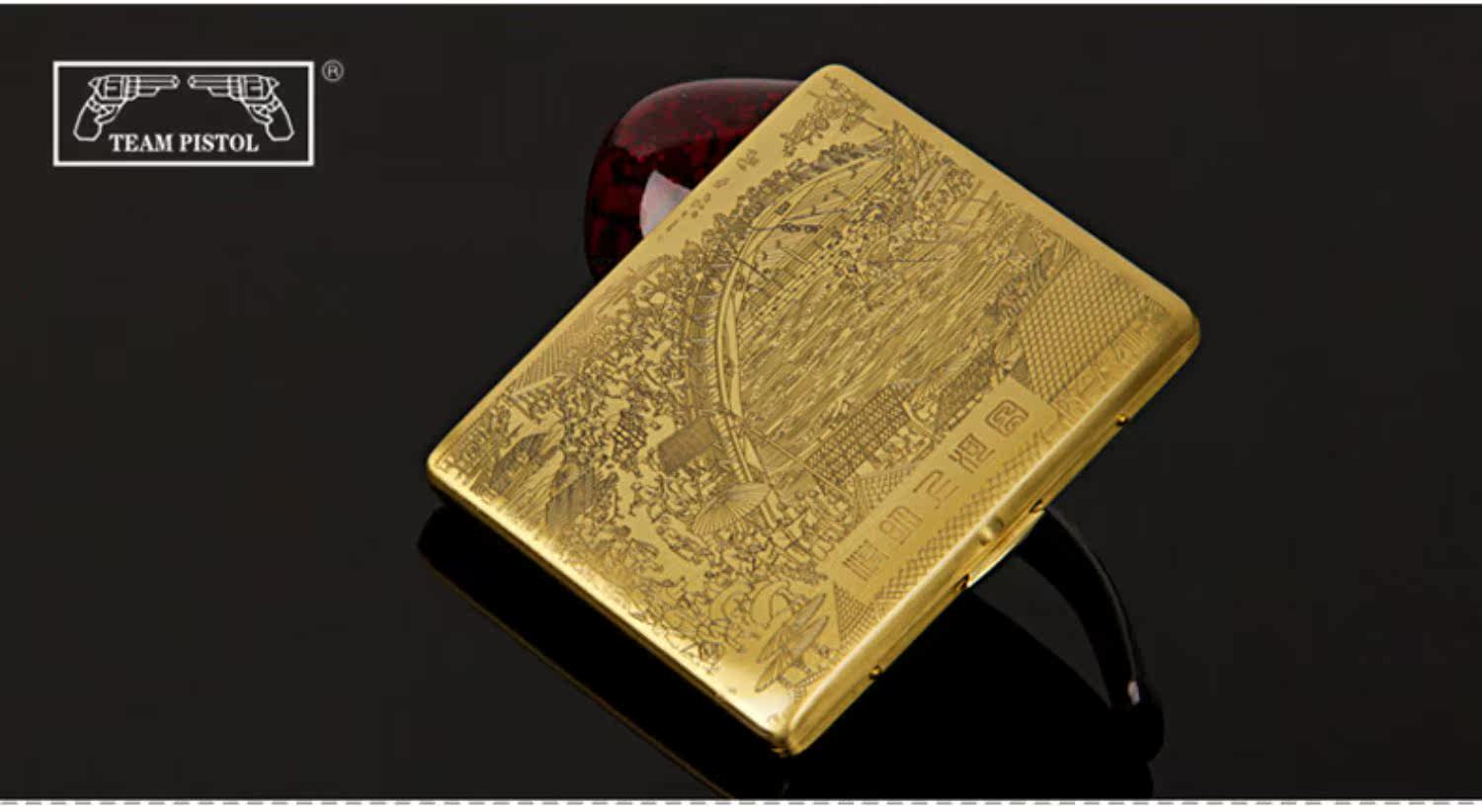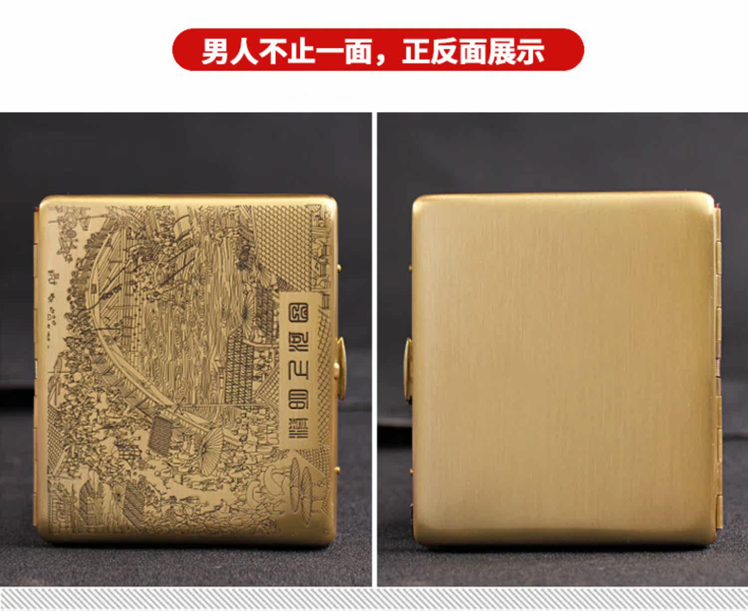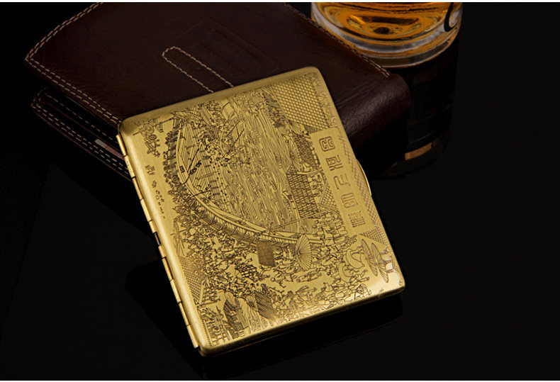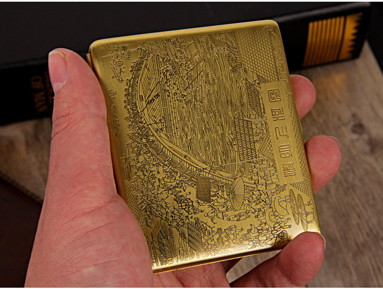 Двухногенная сигаретная коробка 9, наполненная металлической чистой медной, резной ультра -толстой сигаретной коробкой мужская сигаретная зажигание Qingming Shanghetu Подличная дымовая посуда