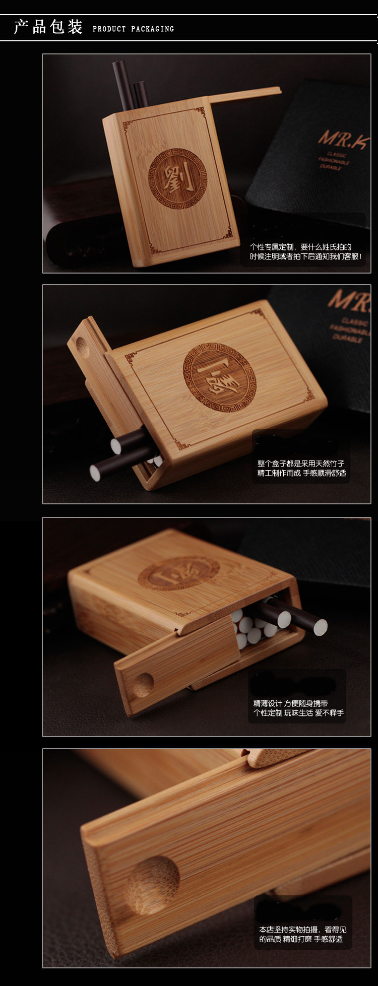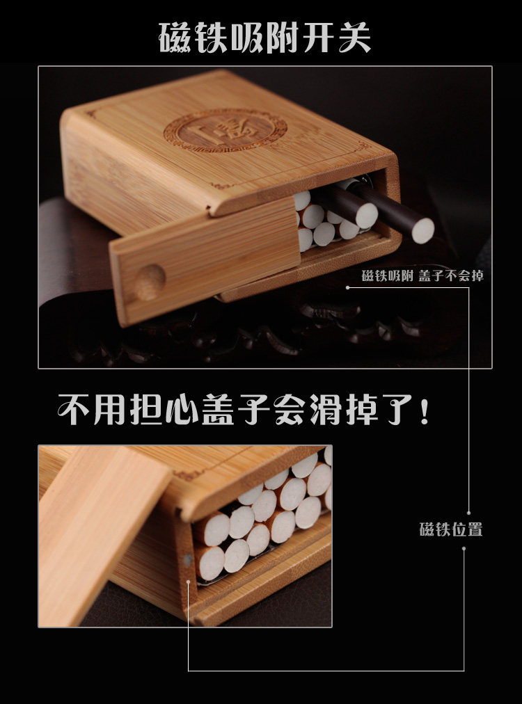 [Функциональные особенности]: Вы можете положить целую пачку сигарет, что очень твердо.Бамбуковая сигаретная коробка.