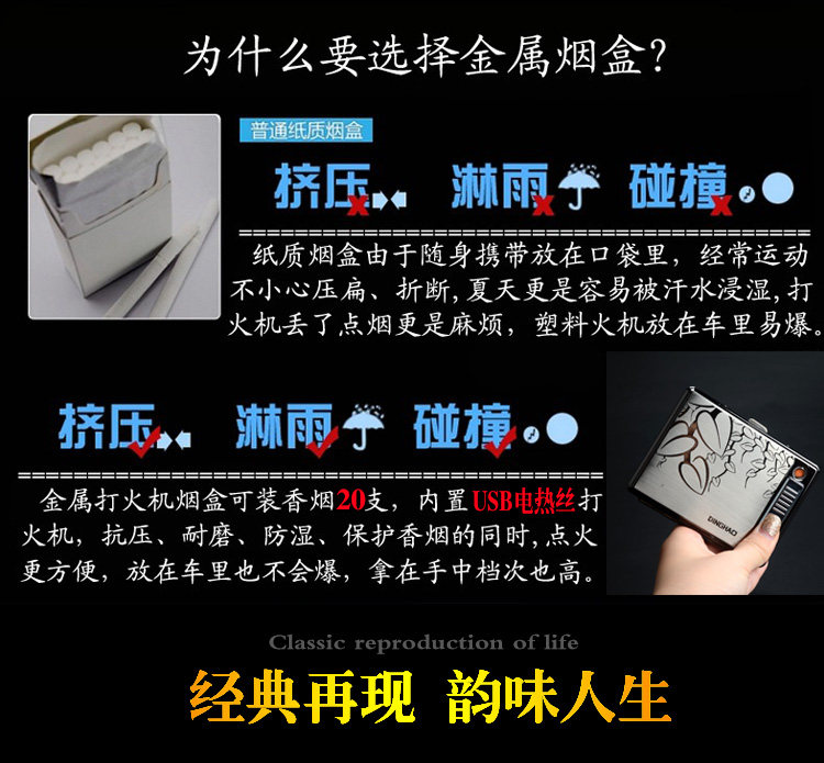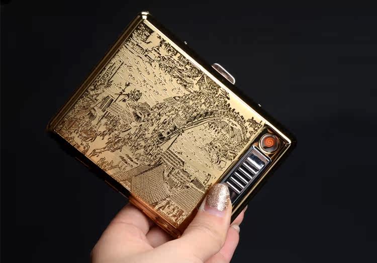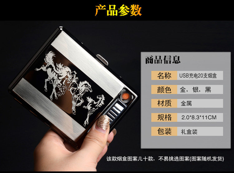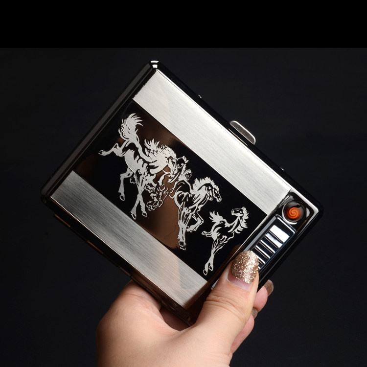 Металлический портсигар из нержавеющей стали с usb-зарядкой, электронная зажигалка, 20 шт