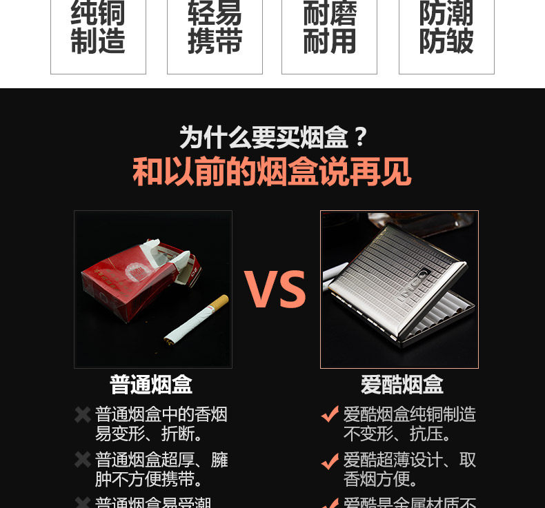 Высококлассный ультратонкий портсигар подходит для мужчин и женщин, медная классическая коробка