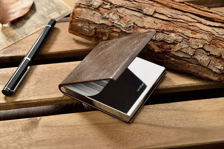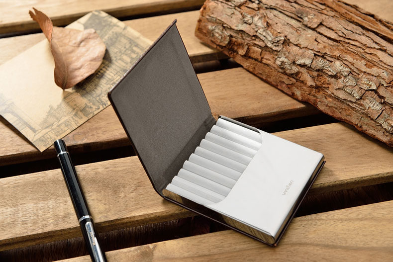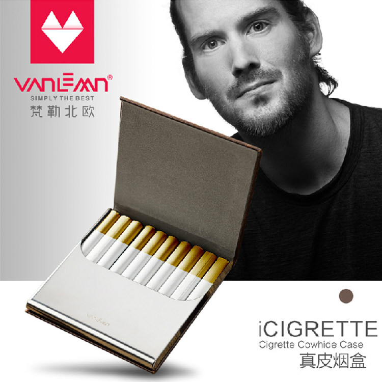 Оригинальный импортный ультратонкий высококлассный портсигар из нержавеющей стали, из натуральной кожи