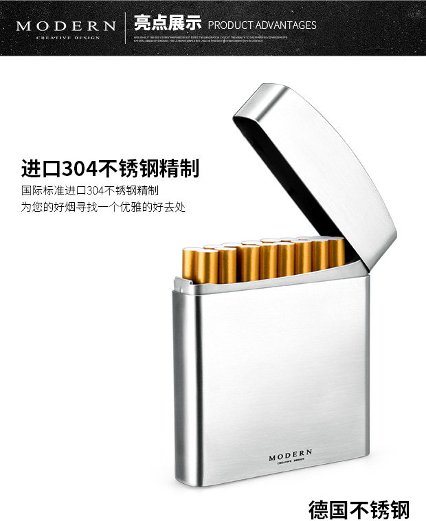 Портативный креативный металлический ультратонкий портсигар из нержавеющей стали, Германия, 20 шт