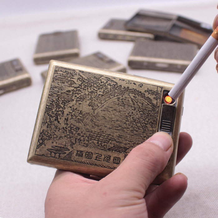 Медный ретро портсигар с usb-зарядкой, креативные аксессуары, 20 шт