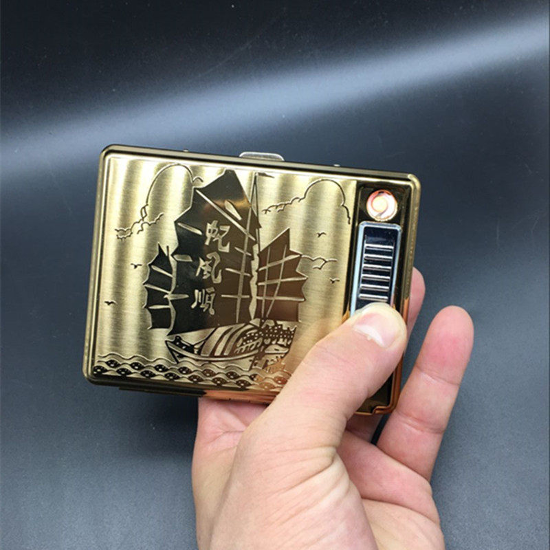 Металлический портсигар из нержавеющей стали с usb-зарядкой, ветрозащитная ультратонкая электронная зажигалка, 20 шт
