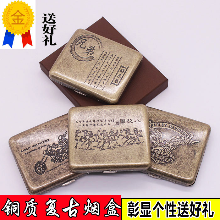 Медный ретро старомодный мужской портативный ультратонкий портсигар, подарочная коробка, 20 шт, делается под заказ