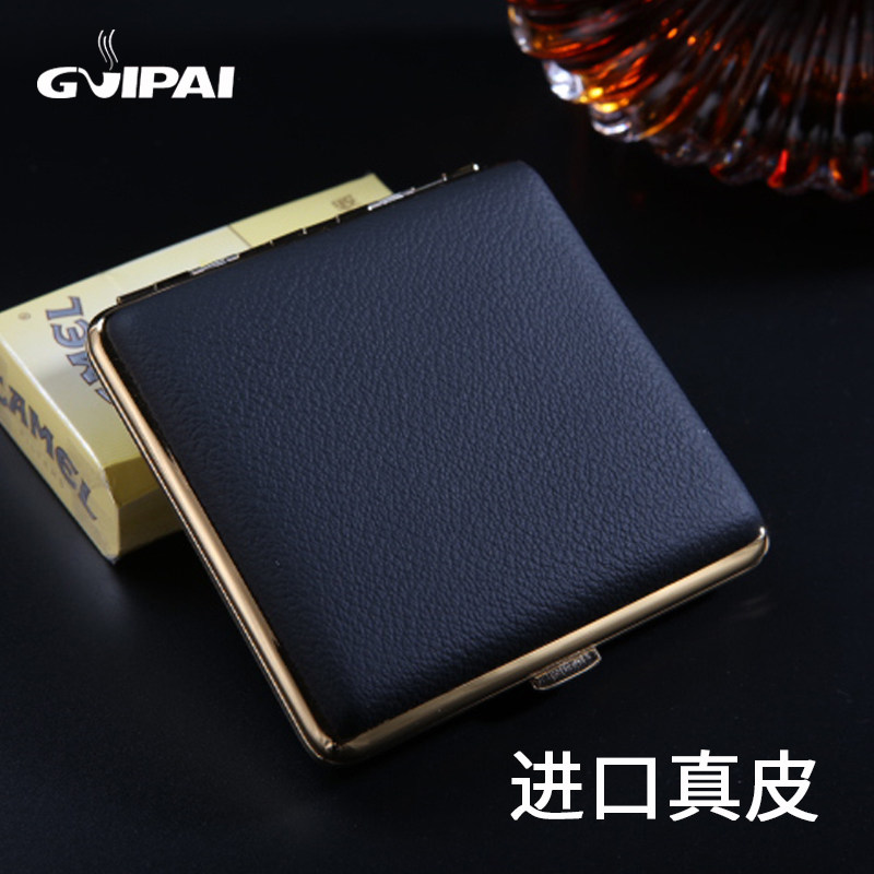 Портативный ультратонкий креативный кожаный портсигар из нержавеющей стали, из натуральной кожи, 20 шт