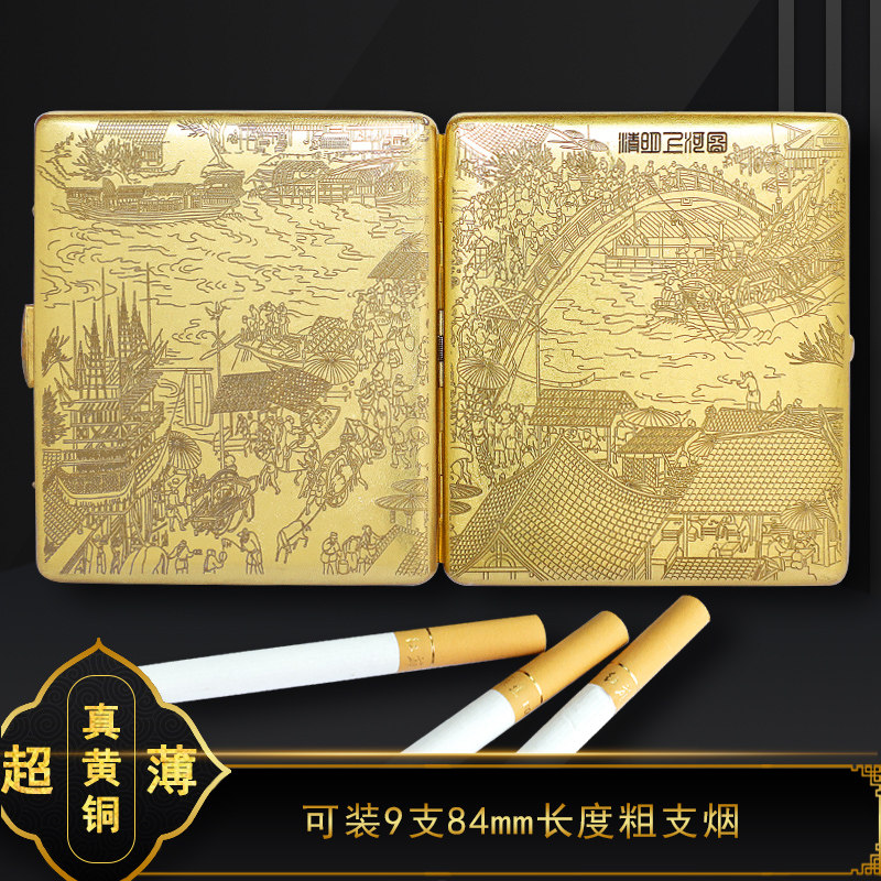 Мужской ультратонкий латунный портативный металлический портсигар, 9 шт