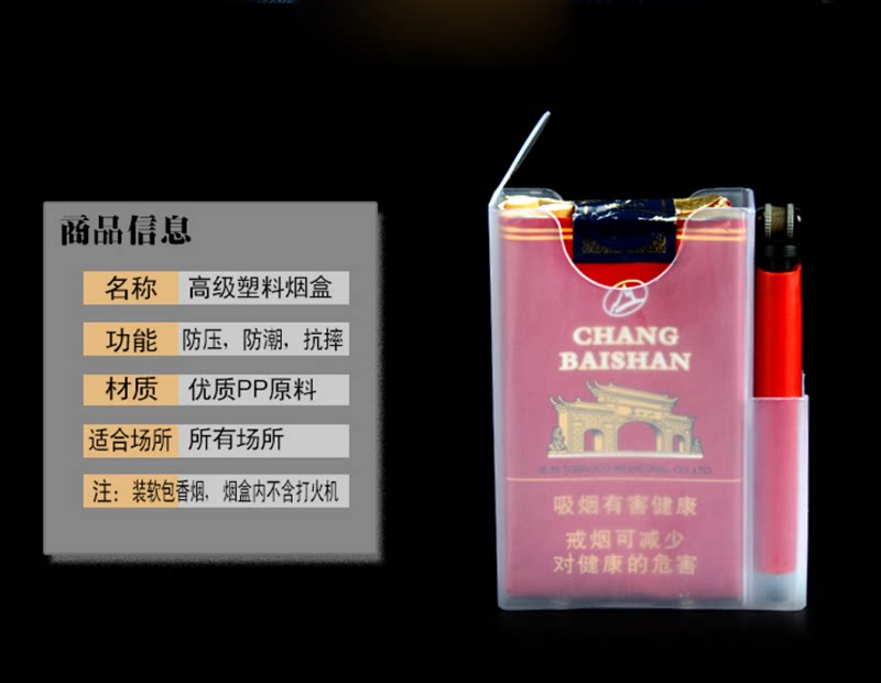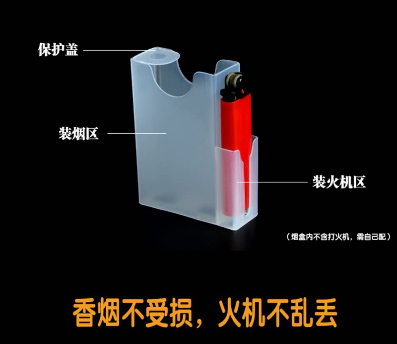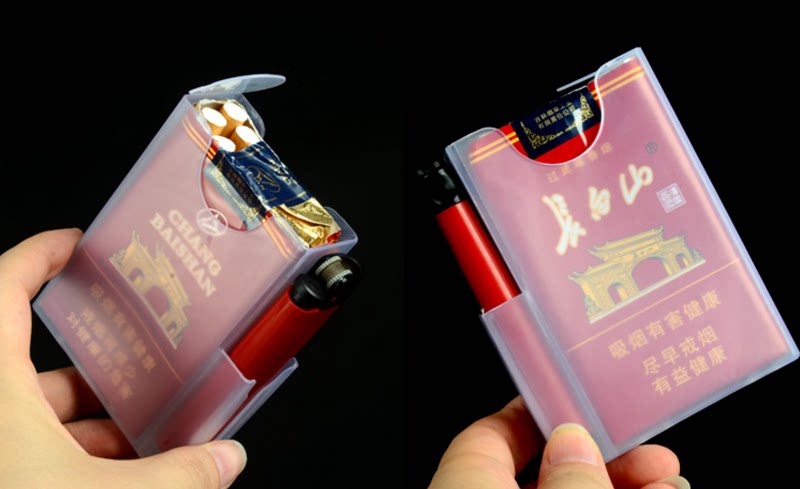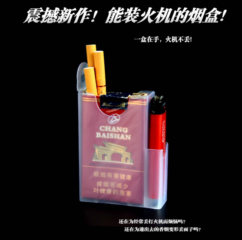 Пластиковый прозрачный портсигар, износостойкая зажигалка, 20 шт