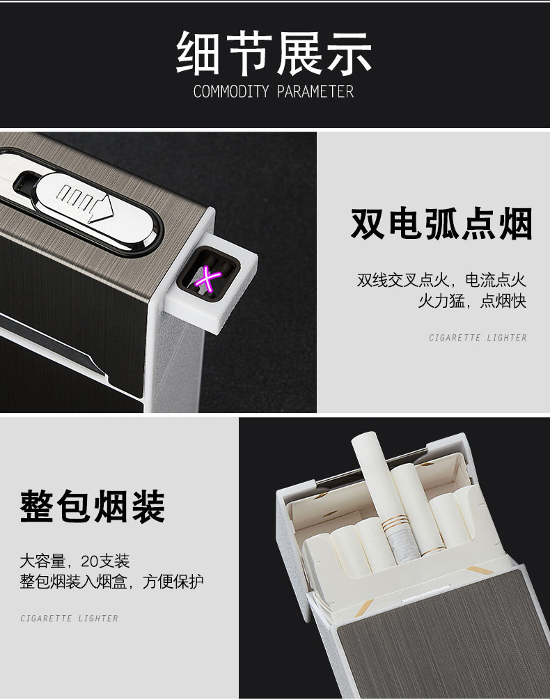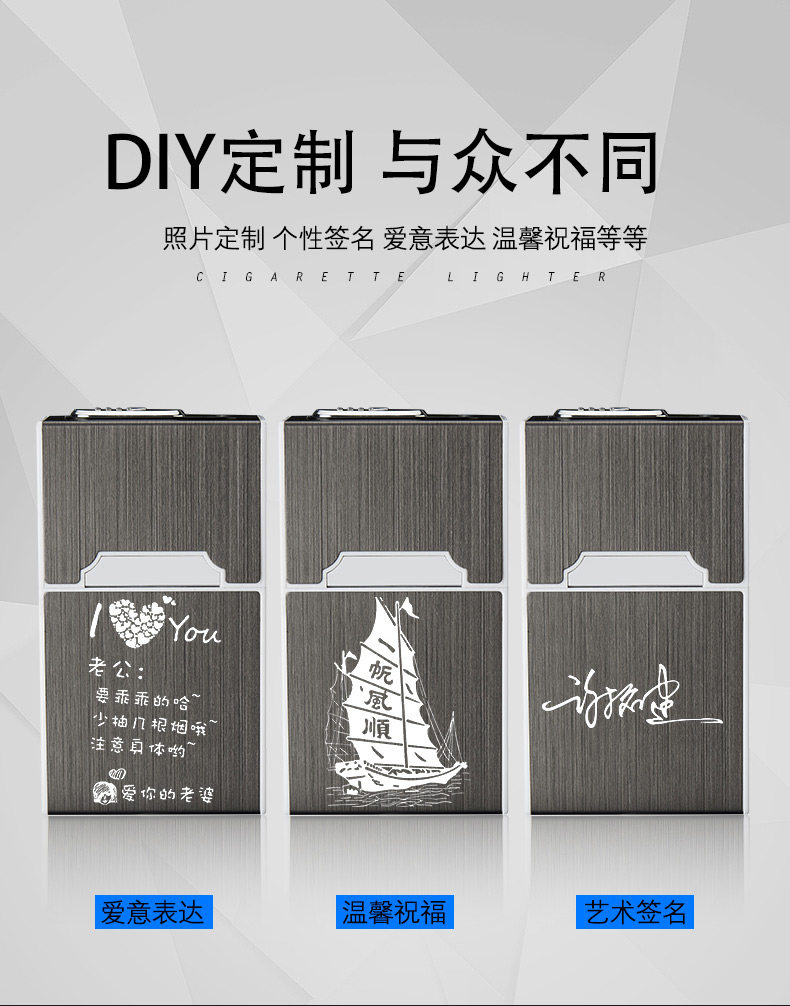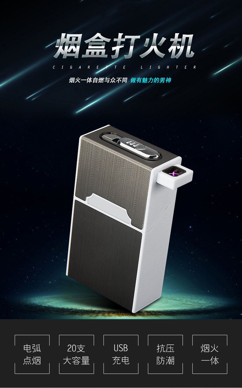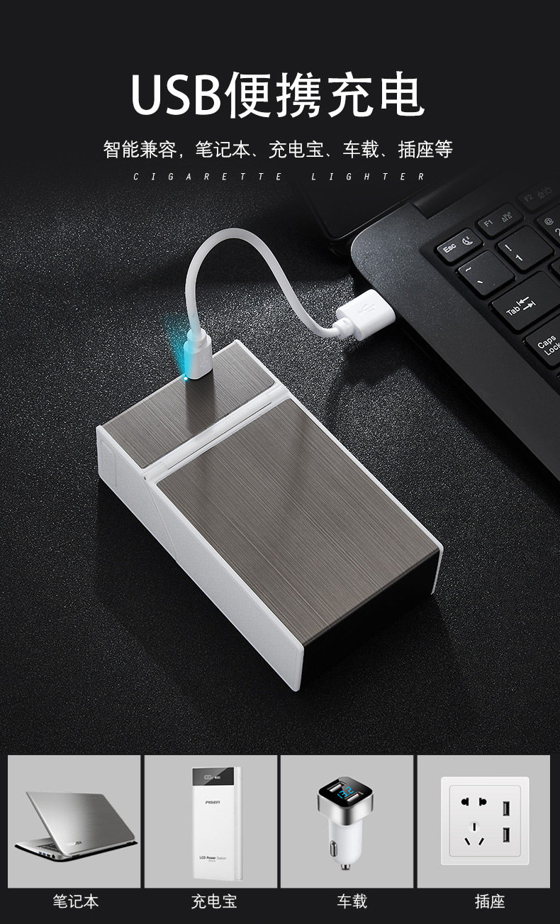 Портсигар с зарядкой, креативная ветрозащитная двухдуговая зажигалка, популярно в интернете, 20 шт, делается под заказ, 2018