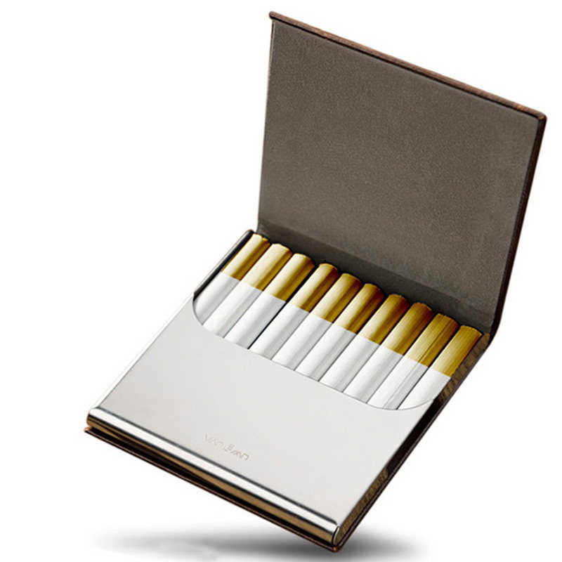 Импортный креативный высококлассный ультратонкий портсигар подходит для мужчин и женщин, 10 шт, из натуральной кожи
